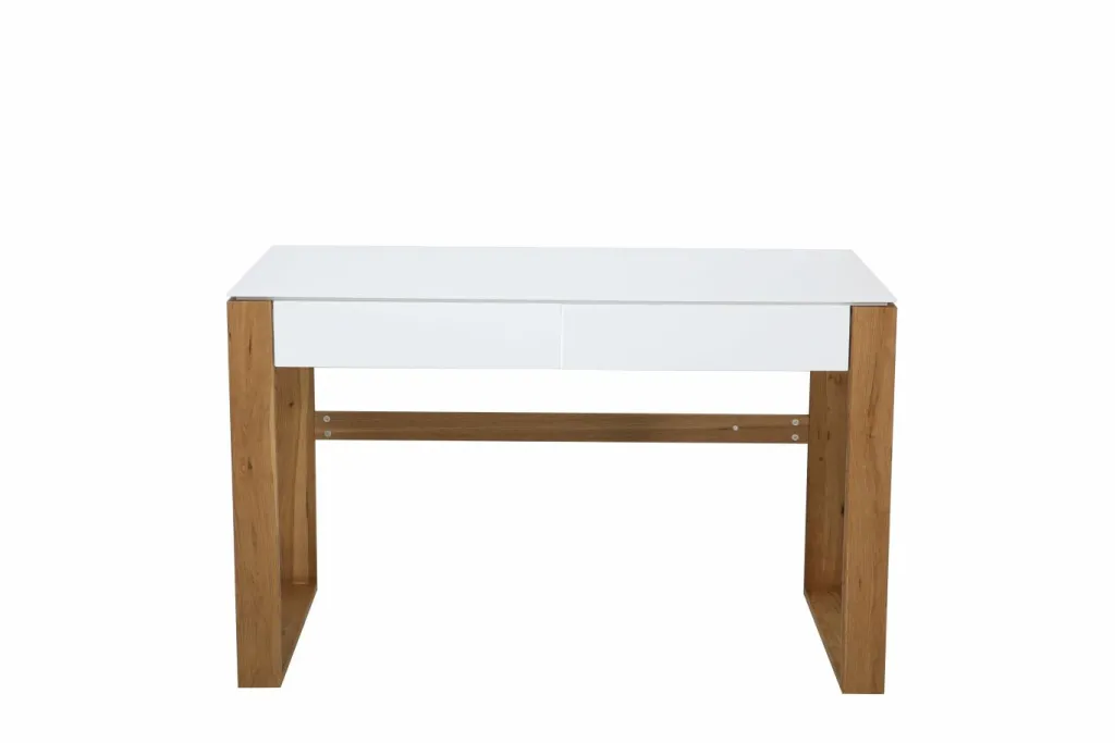 MDF (panneau en fibres de bois de densité moyenne) ton blanc et piètement en bois de chêne (Chine) laissé à l’état naturel