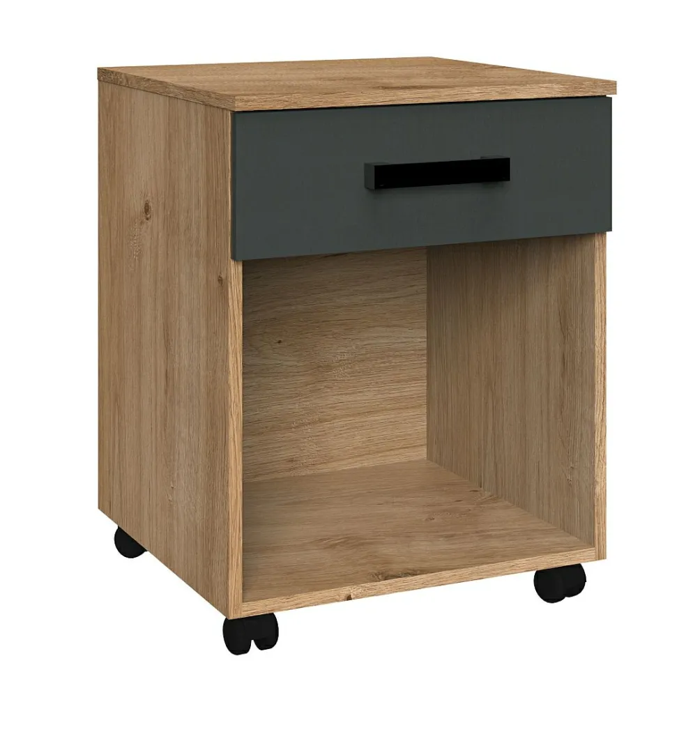 Façade et caisson : décor planches de chêne avec un tiroir ton graphite