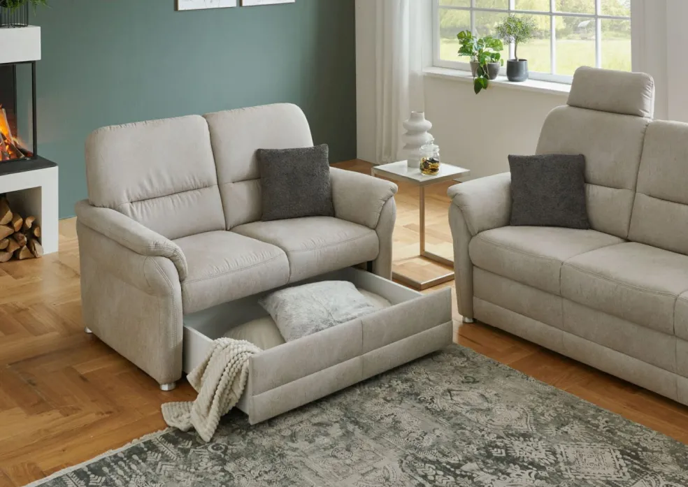 | Equipement canapés: | Dos habillé, incl. coffre de lit | ||