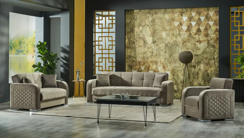 Sans décoration / canapé 3 places / fauteuil / table basse