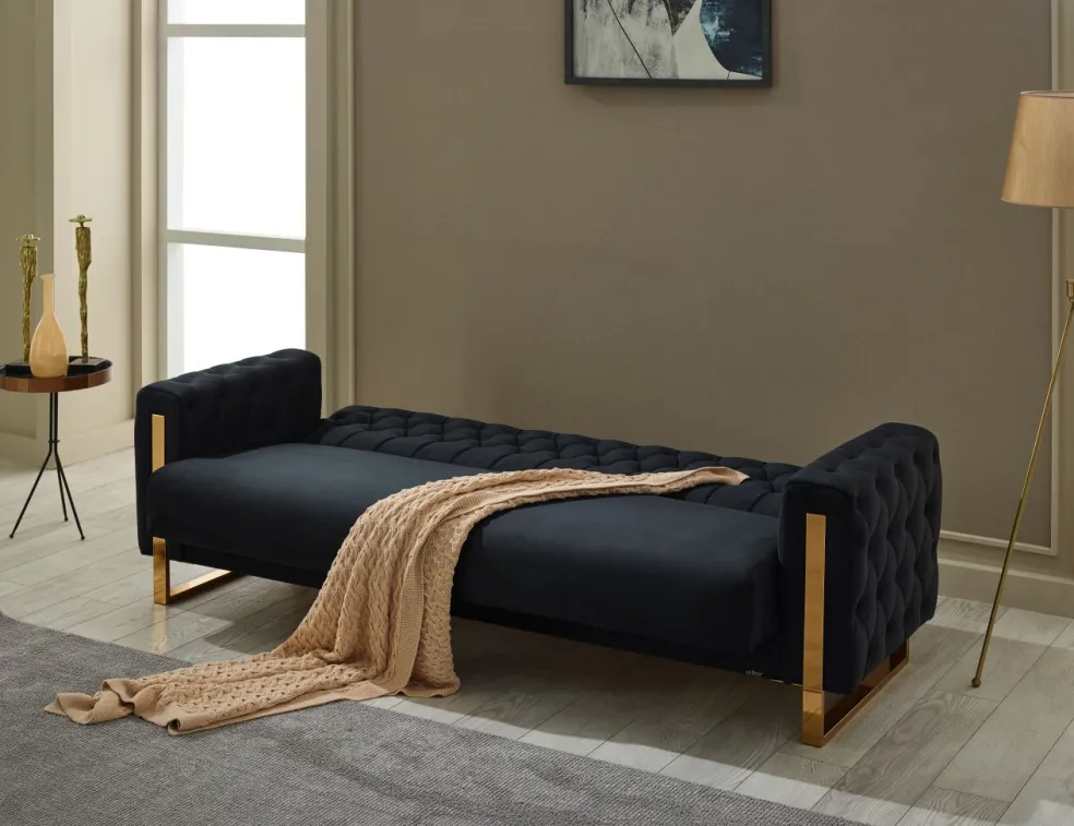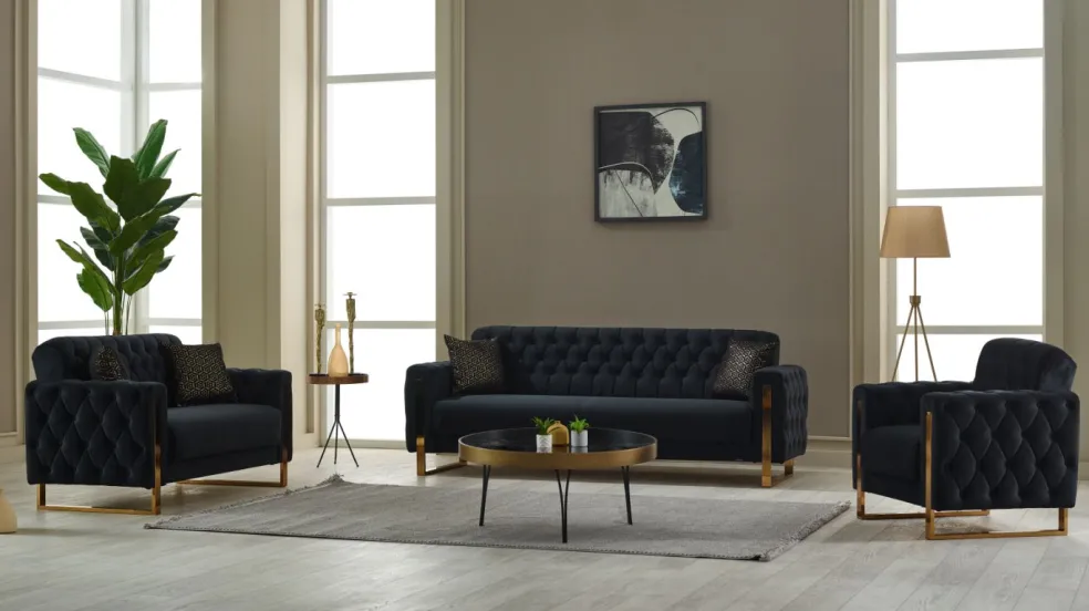 Revetement : tissu Melon Soft noir, compose de 70 % polyester et 30 % coton