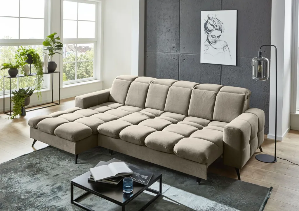 | Equipement canapés: | Appuie-tête(s), Dos habillé, Méridienne à gauche, Prolongement de l’assise manuellement, incl. coussins | ||