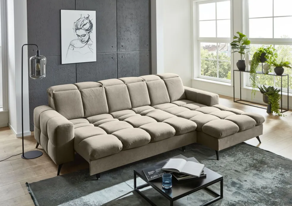 | Equipement canapés: | Appuie-tête(s), Dos habillé, Méridienne à droite, Prolongement de l’assise manuellement, incl. coussins | ||