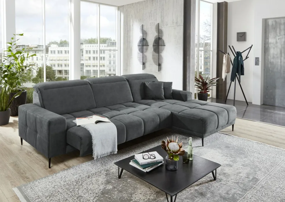| Equipement canapés: | Appuie-tête(s), Méridienne à droite, Prolongement de l’assise manuellement, incl. coussins | ||