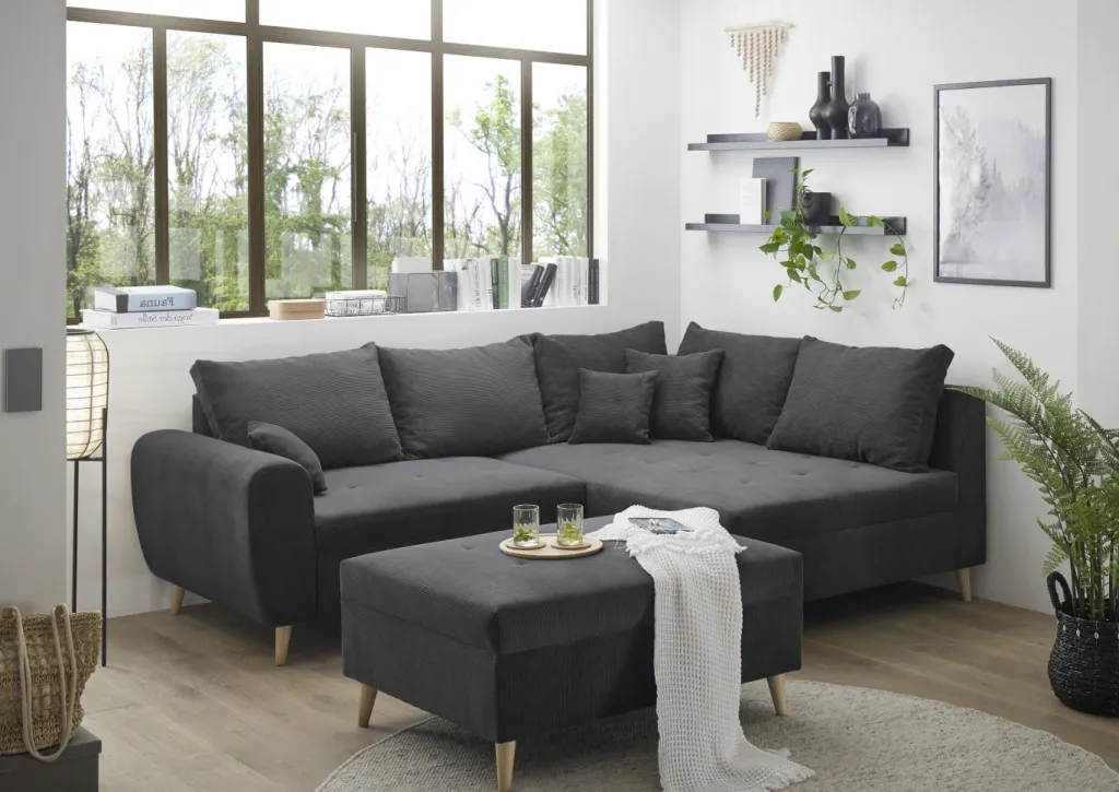 Bezug: Stoff Fjord 16 in der Farbe anthrazit aus 92% Polyester und 8% Polyamid