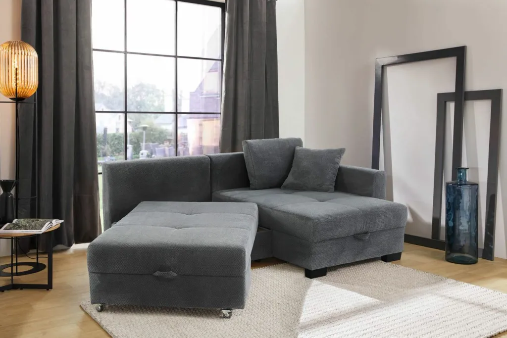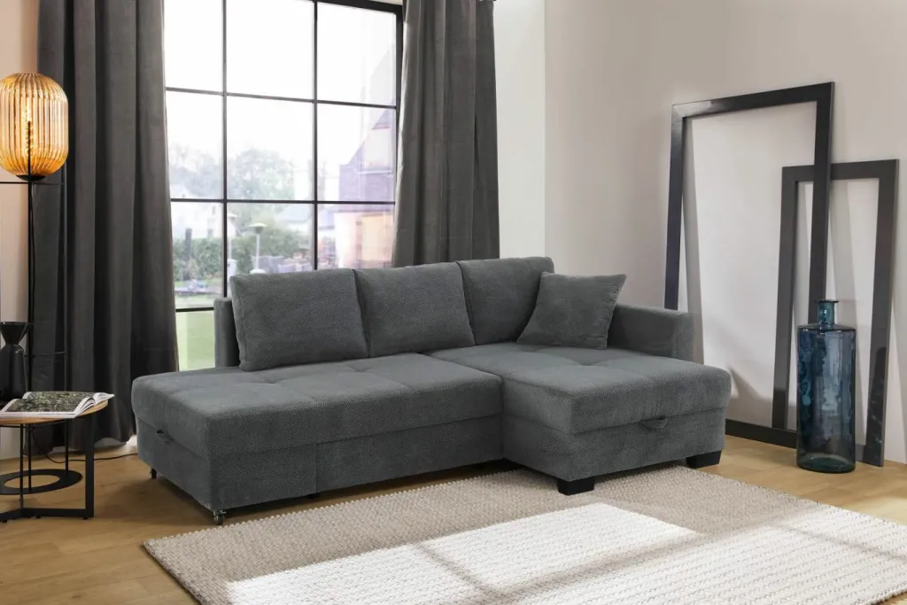| Equipement canapés: | Dos habillé, Méridienne à droite ou à gauche, incl. coffre de lit, incl. coussins | ||