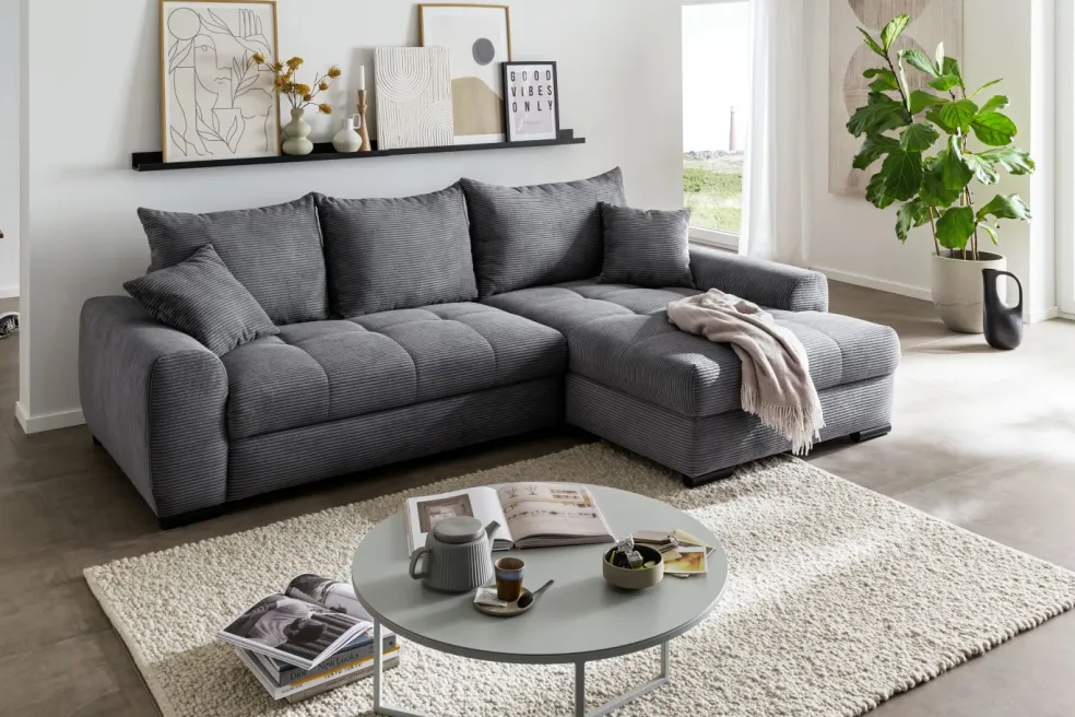 | Equipement canapés: | Dos habillé, Méridienne à droite ou à gauche, incl. coffre de lit, incl. coussins | ||
