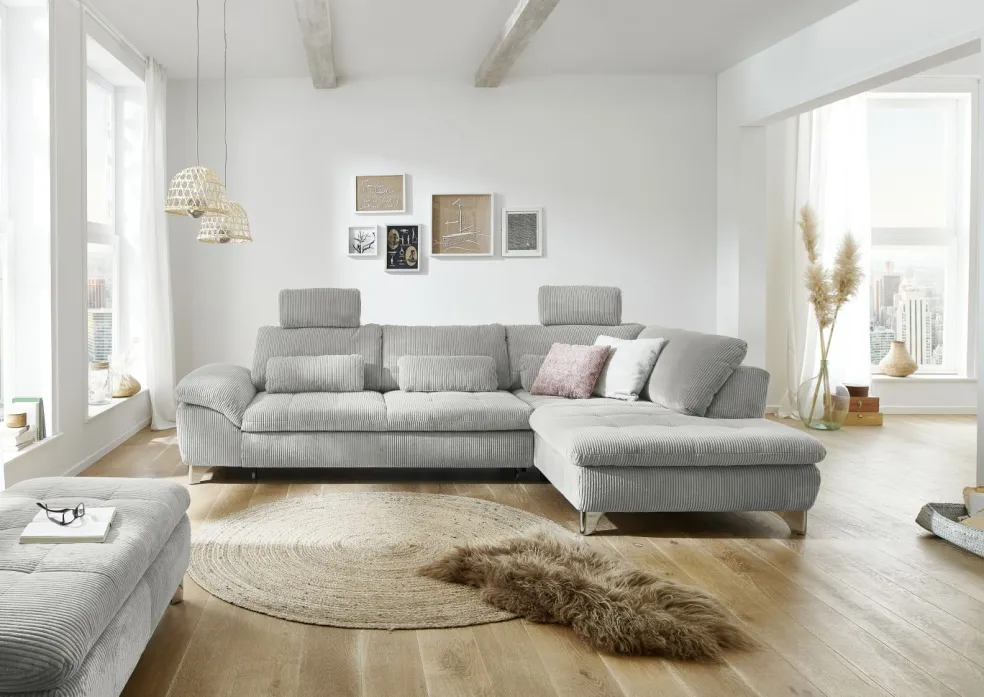 | Equipement canapés: | Appuie-tête(s), Dos habillé, Méridienne à droite, Prolongement de l’assise manuellement, Tiroirs | ||