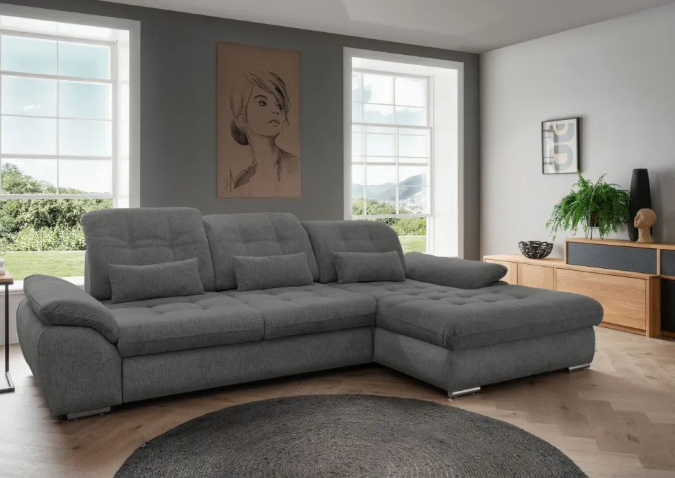 | Equipement canapés: | Appuie-tête(s), Dos habillé, Méridienne à droite, Prolongement de l’assise manuellement, incl. coffre de lit, incl. coussins | ||