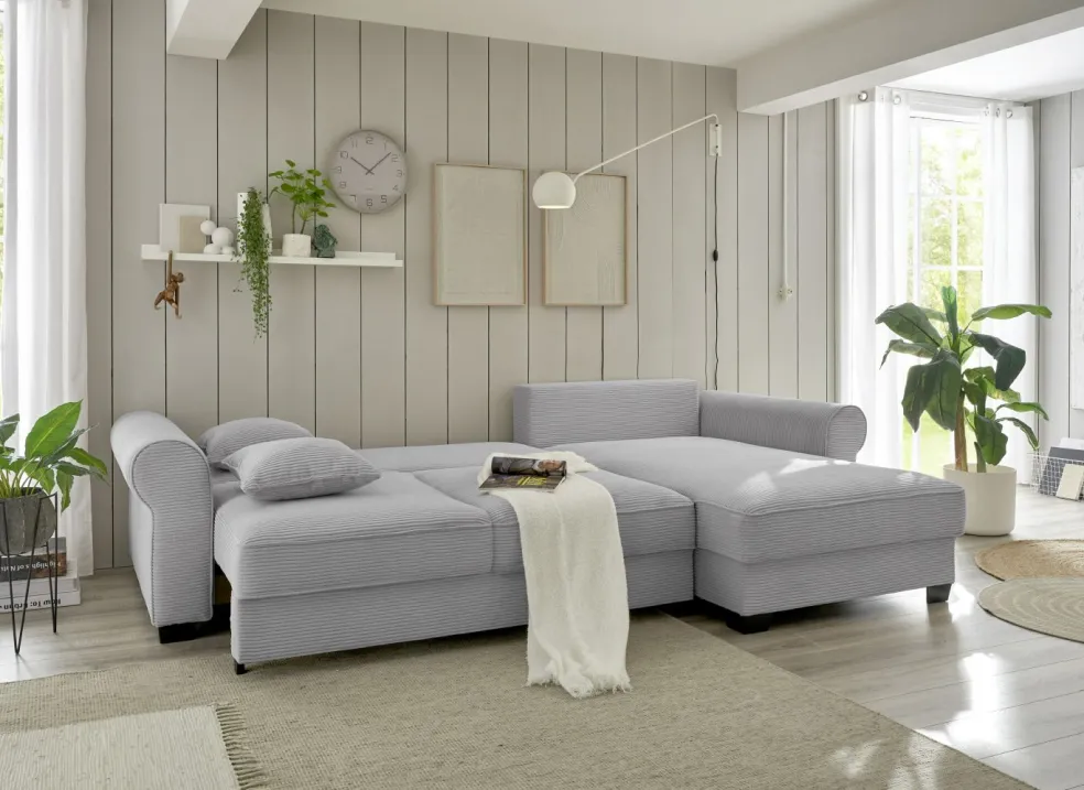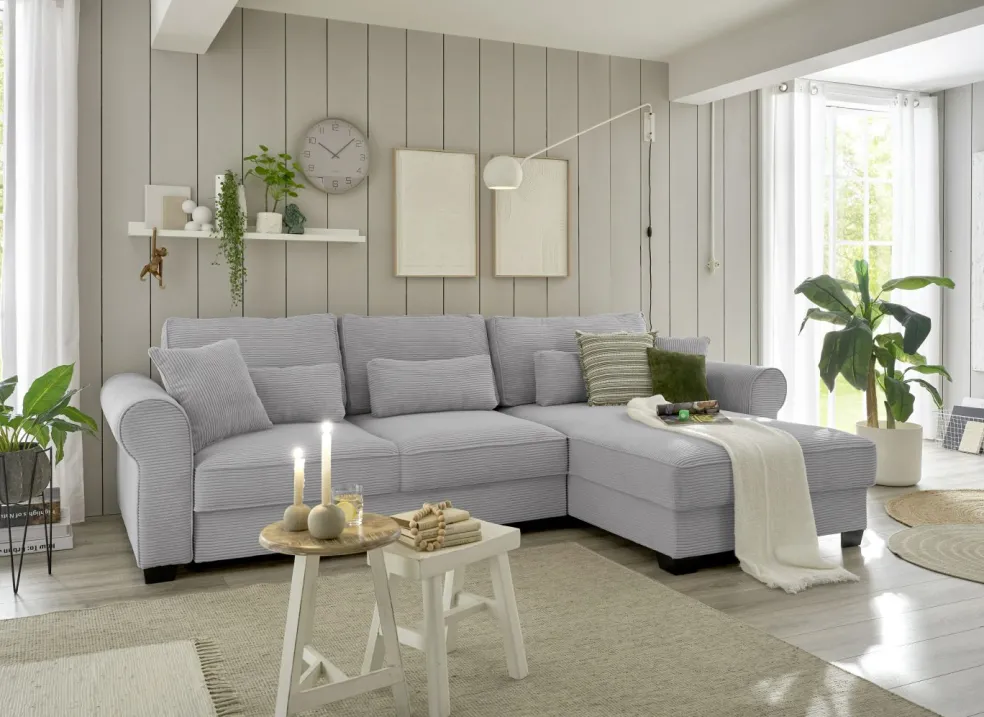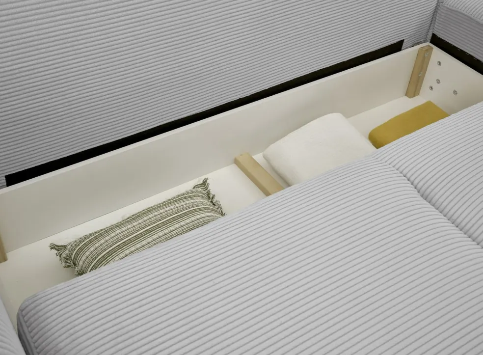 | Equipement canapés: | Dos habillé, Méridienne à droite ou à gauche, incl. coffre de lit, incl. coussins | ||