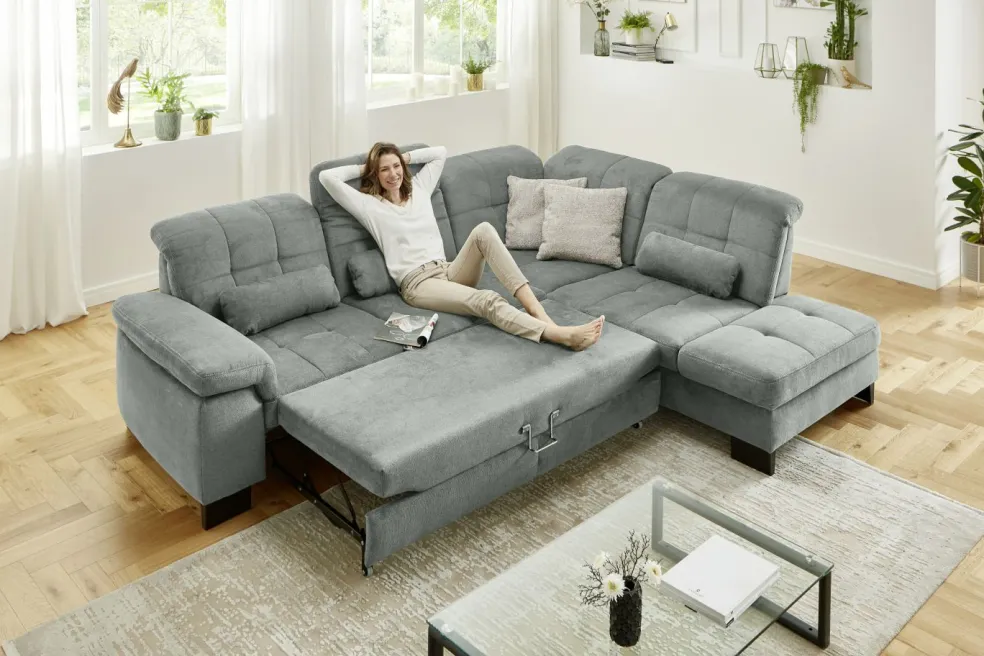 | Equipement canapés: | Appuie-tête(s), Dos habillé, Espace de rangement, Méridienne à droite, Prolongement de l’assise manuellement | ||
