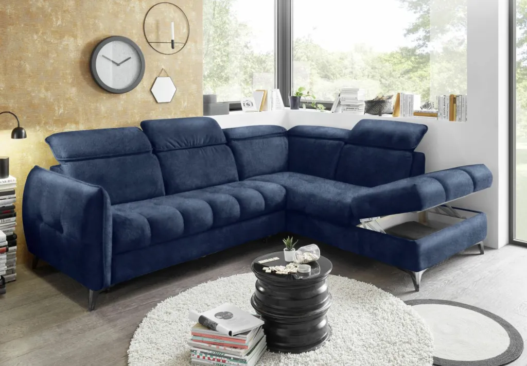| Equipement canapés: | Appuie-tête(s), Dos habillé, Méridienne à droite, incl. coffre de lit | ||