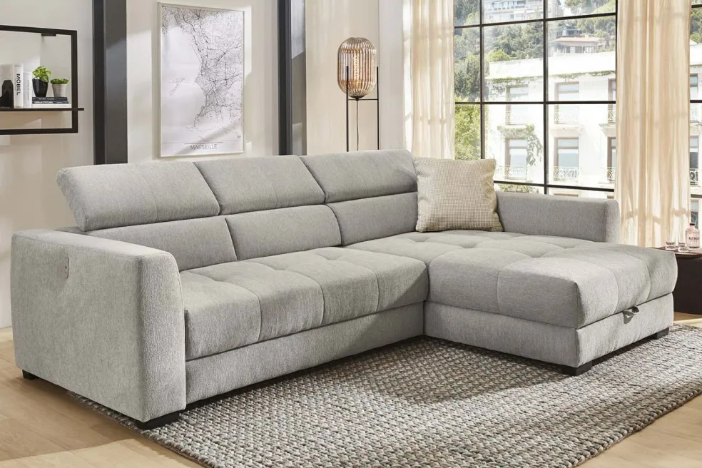 | Equipement canapés: | Appuie-tête(s), Dos habillé, Méridienne à droite ou à gauche, Port USB, Prolongement de l’assise motorisé, incl. coffre de lit, incl. coussins | ||