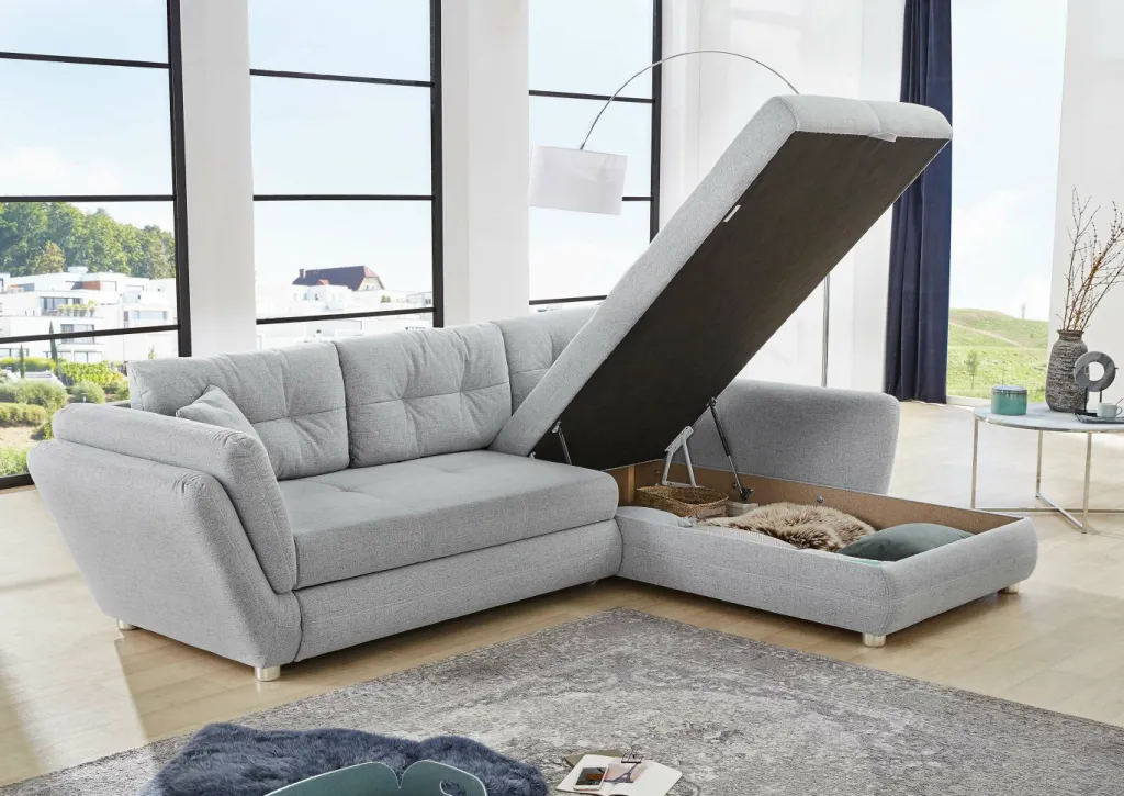 | Equipement canapés: | Dos habillé, Méridienne à droite ou à gauche, incl. coffre de lit, incl. coussins | ||