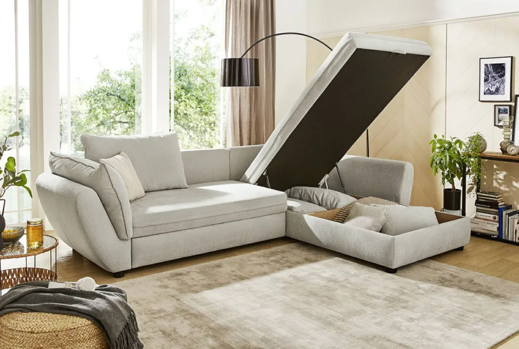 | Equipement canapés: | Méridienne à droite ou à gauche, incl. coffre de lit, incl. coussins | ||