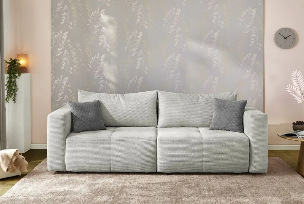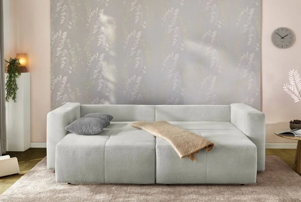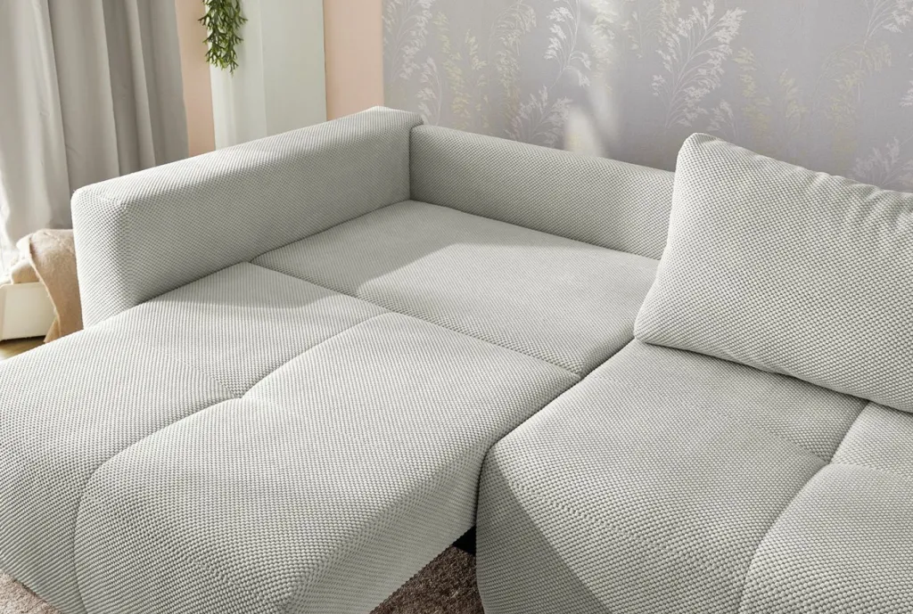 Les deux assises peuvent coulisser séparément et permettent de transformer le canapé en lit spacieux en un tour de main.