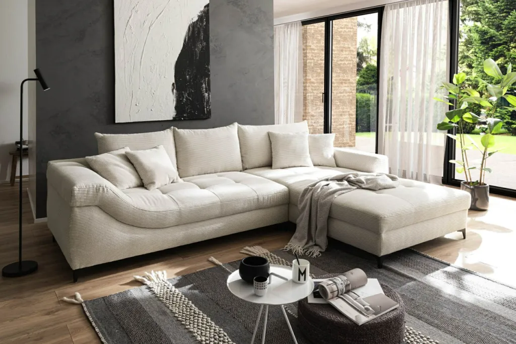 | Equipement canapés: | Dos habillé, Méridienne à droite ou à gauche, incl. coussins | ||