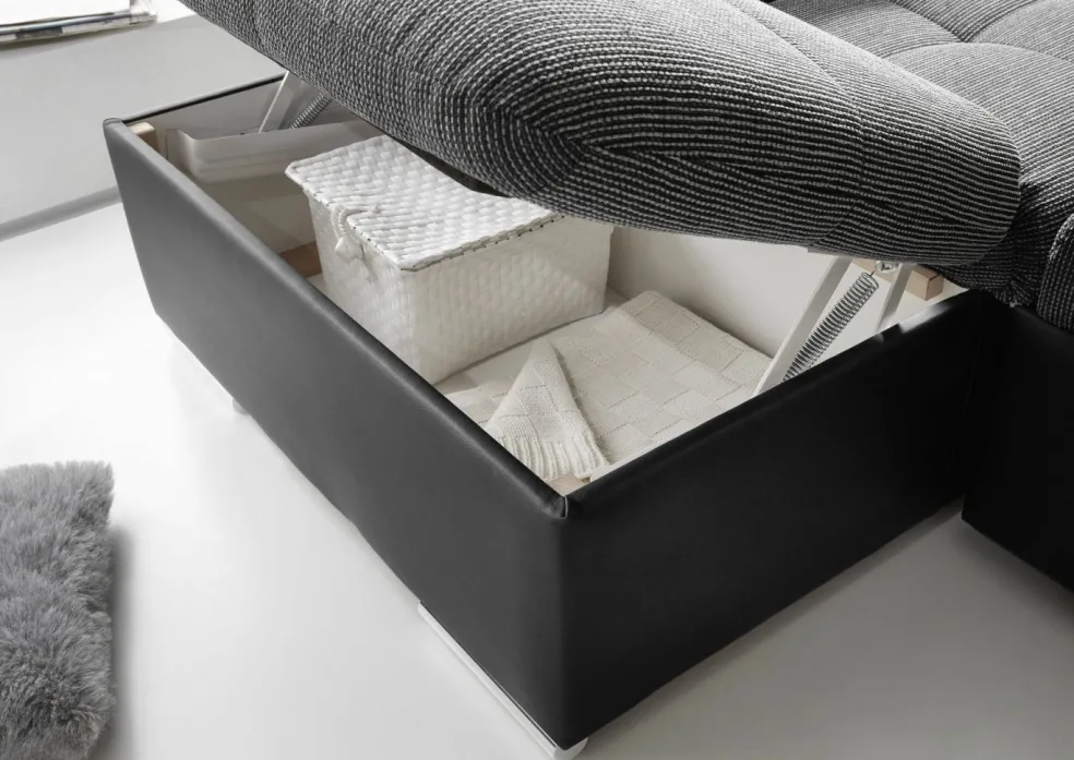 méridienne avec coffre de lit à gauche