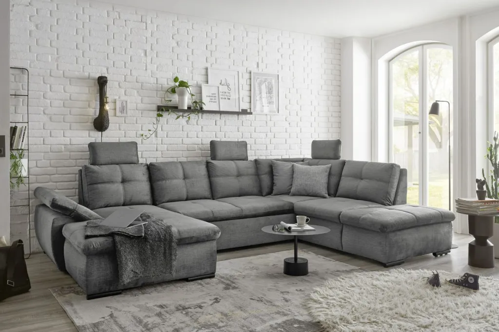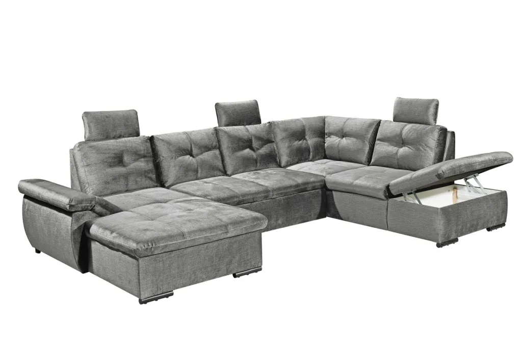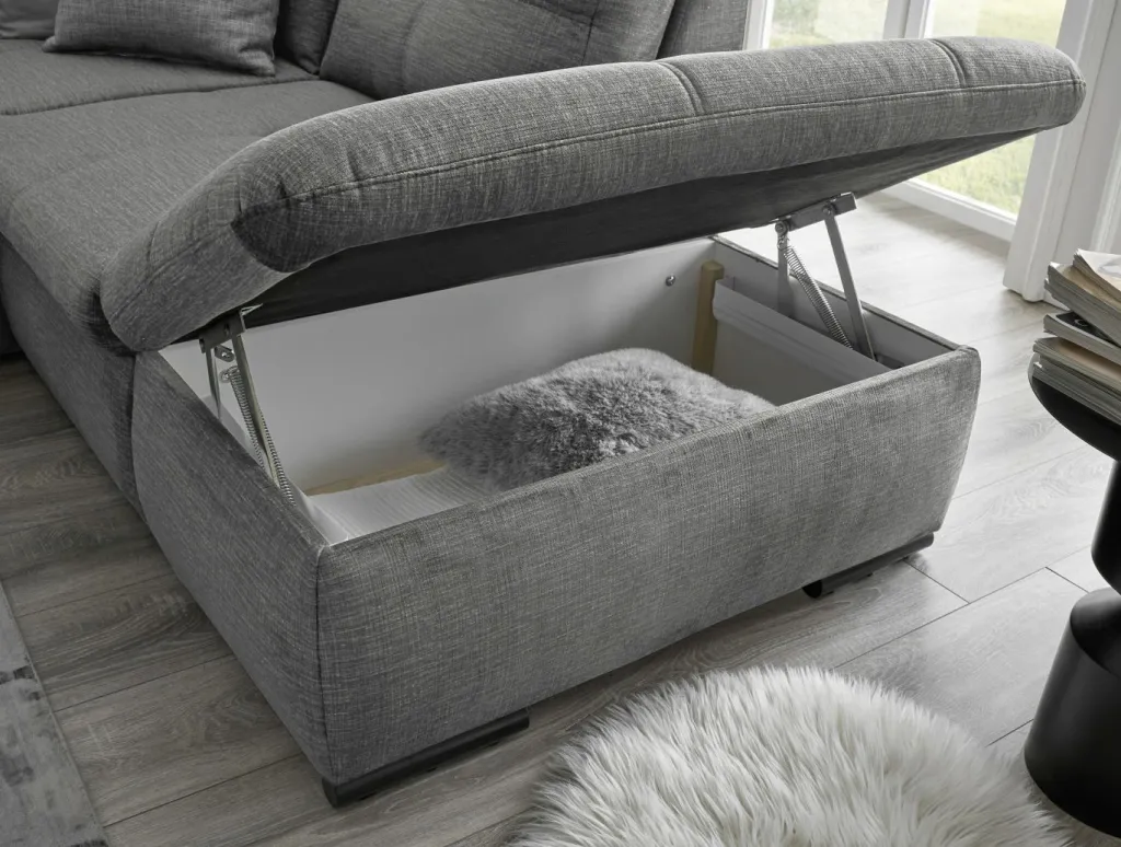 | Equipement canapés: | Appuie-tête(s), Dos habillé, Méridienne à droite, incl. coffre de lit | ||
