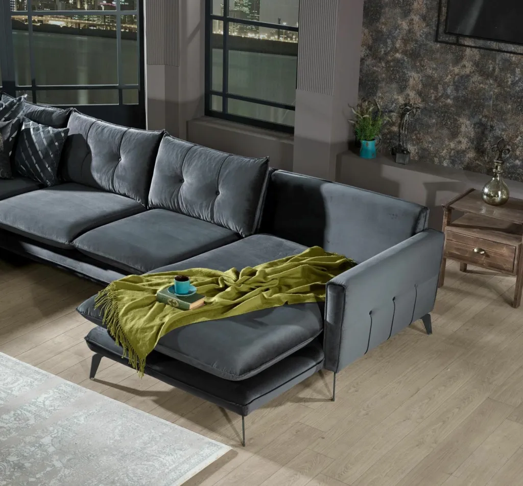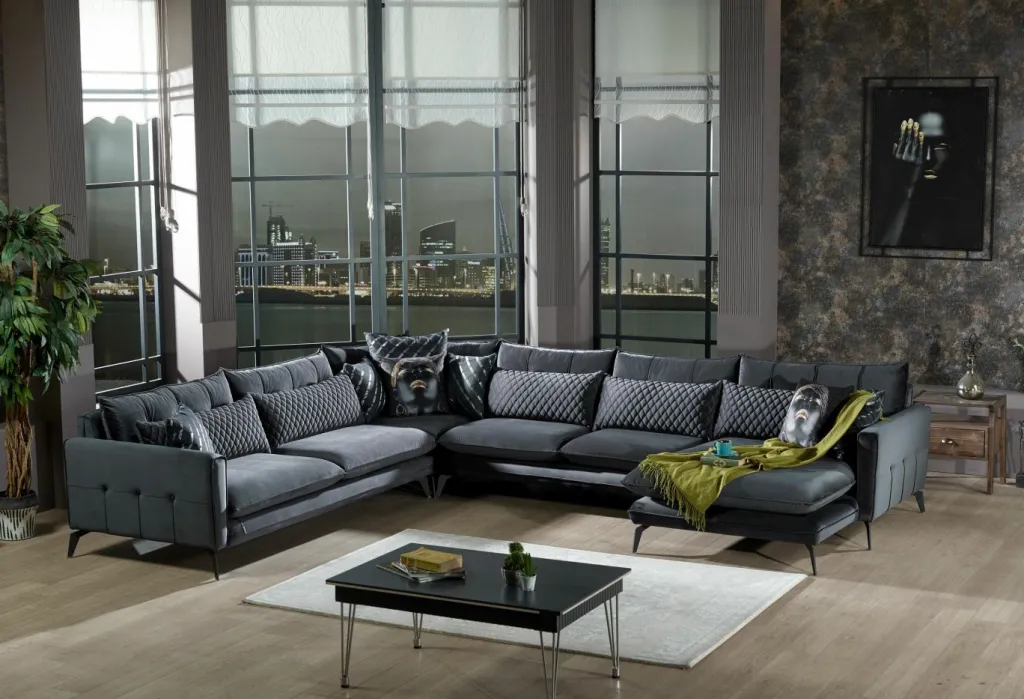 Revêtement : tissu Soft 32 ton gris 90% polyester et 10% coton