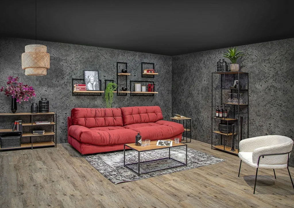Revêtement : tissu 351/1 ton rouge 95 % polyester et 5 % nylon
