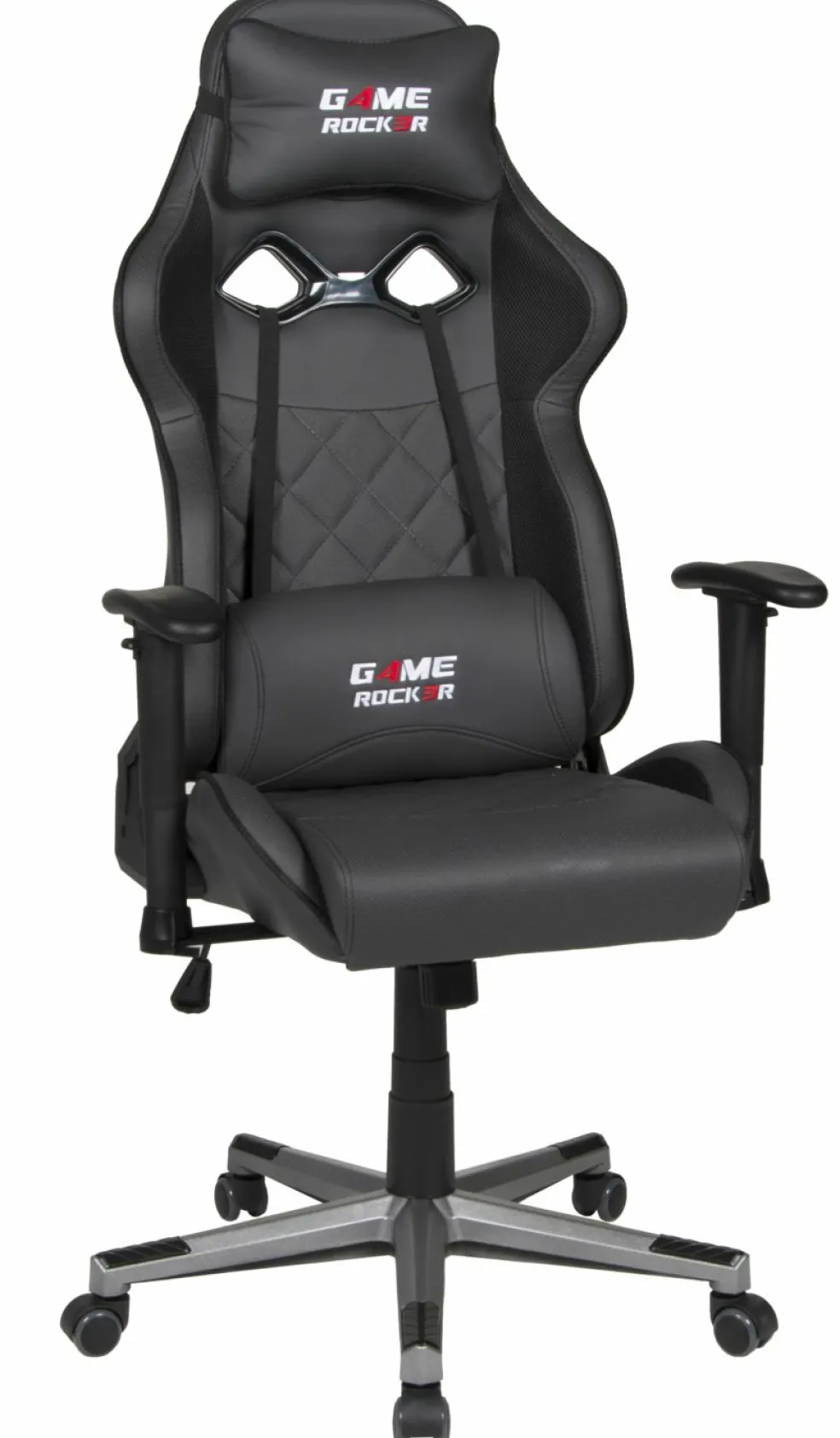 Revêtement : cuir synthétique ton anthracite 70 % polyuréthane, 25 % polyester et 5 % autres fibres et tissu résille 100 % polyester