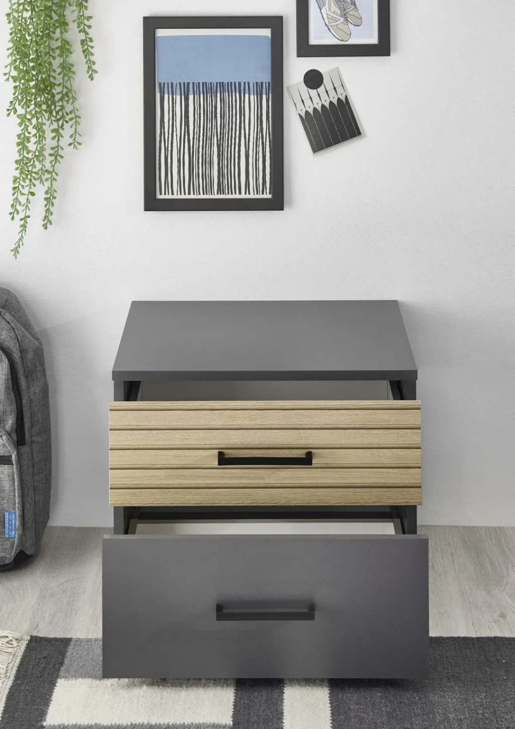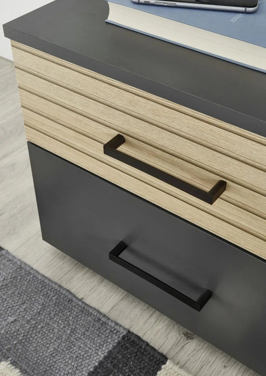 ton graphite avec façade tiroir décor lamelles de chêne, revêtement mélaminé