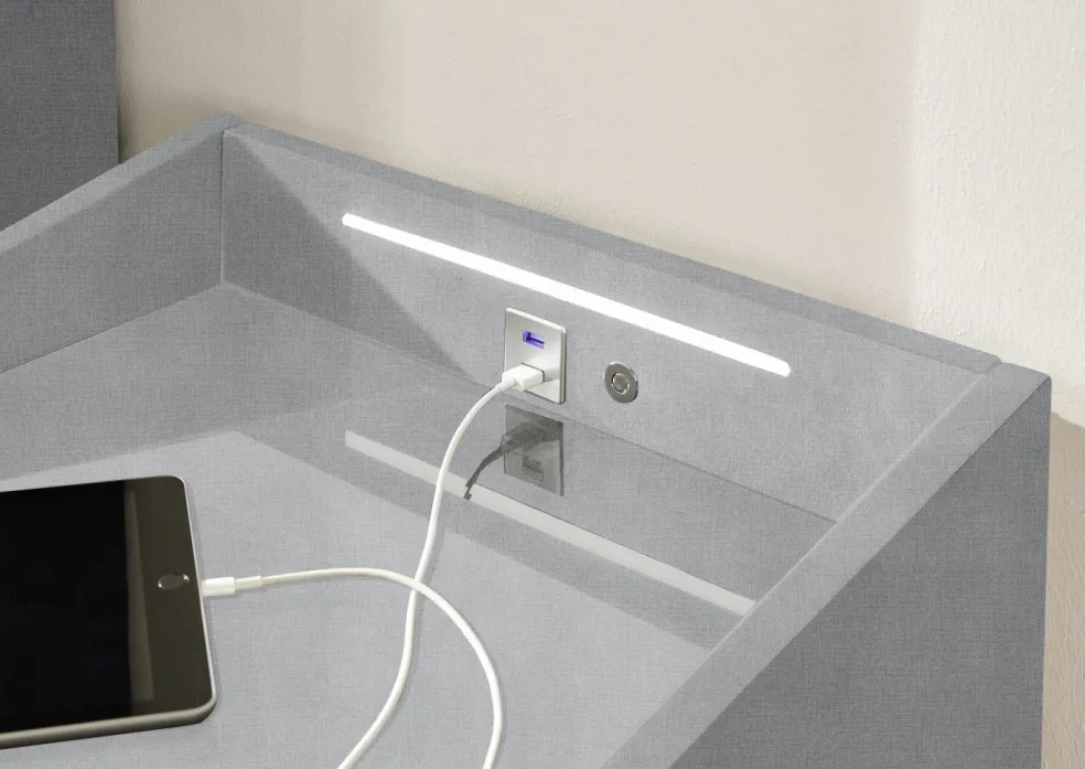 | Équipement Commodes Phono Bureau Étagère: | Plateau en verre, Tiroirs, avec port USB, incl. éclairage | ||