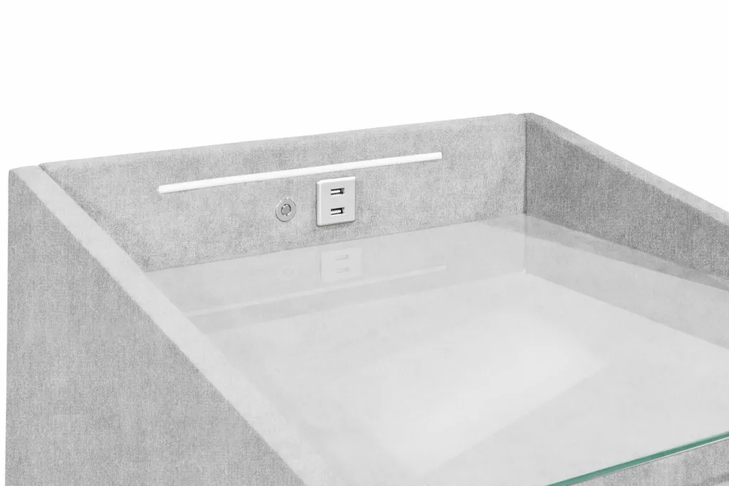 | Équipement Commodes Phono Bureau Étagère: | Plateau en verre, Tiroirs, avec port USB, incl. éclairage | ||