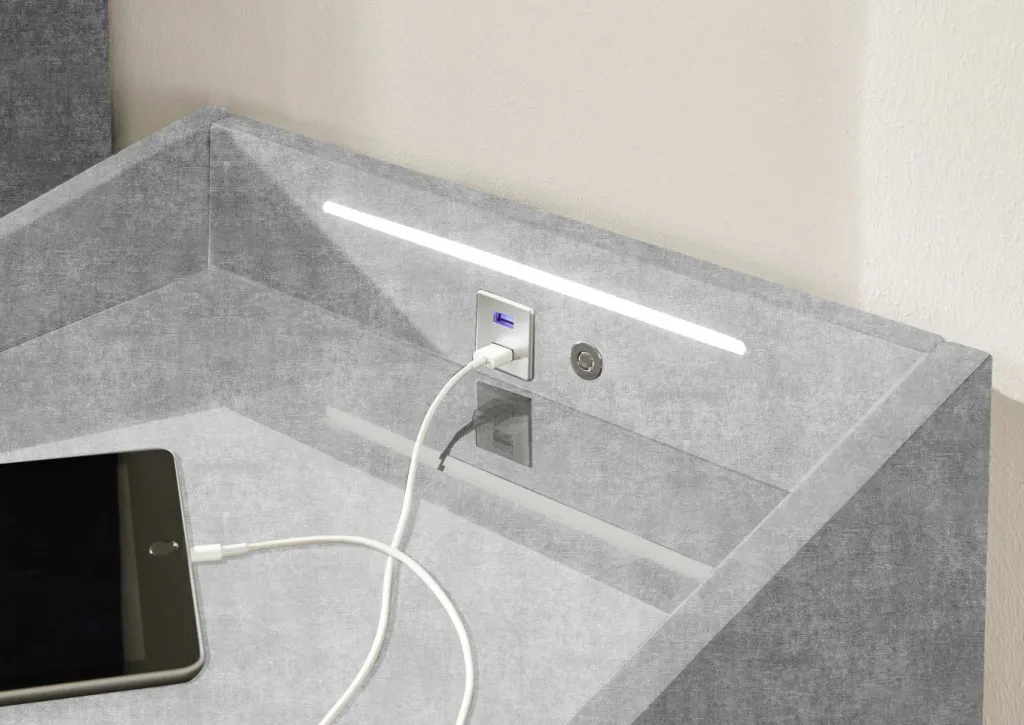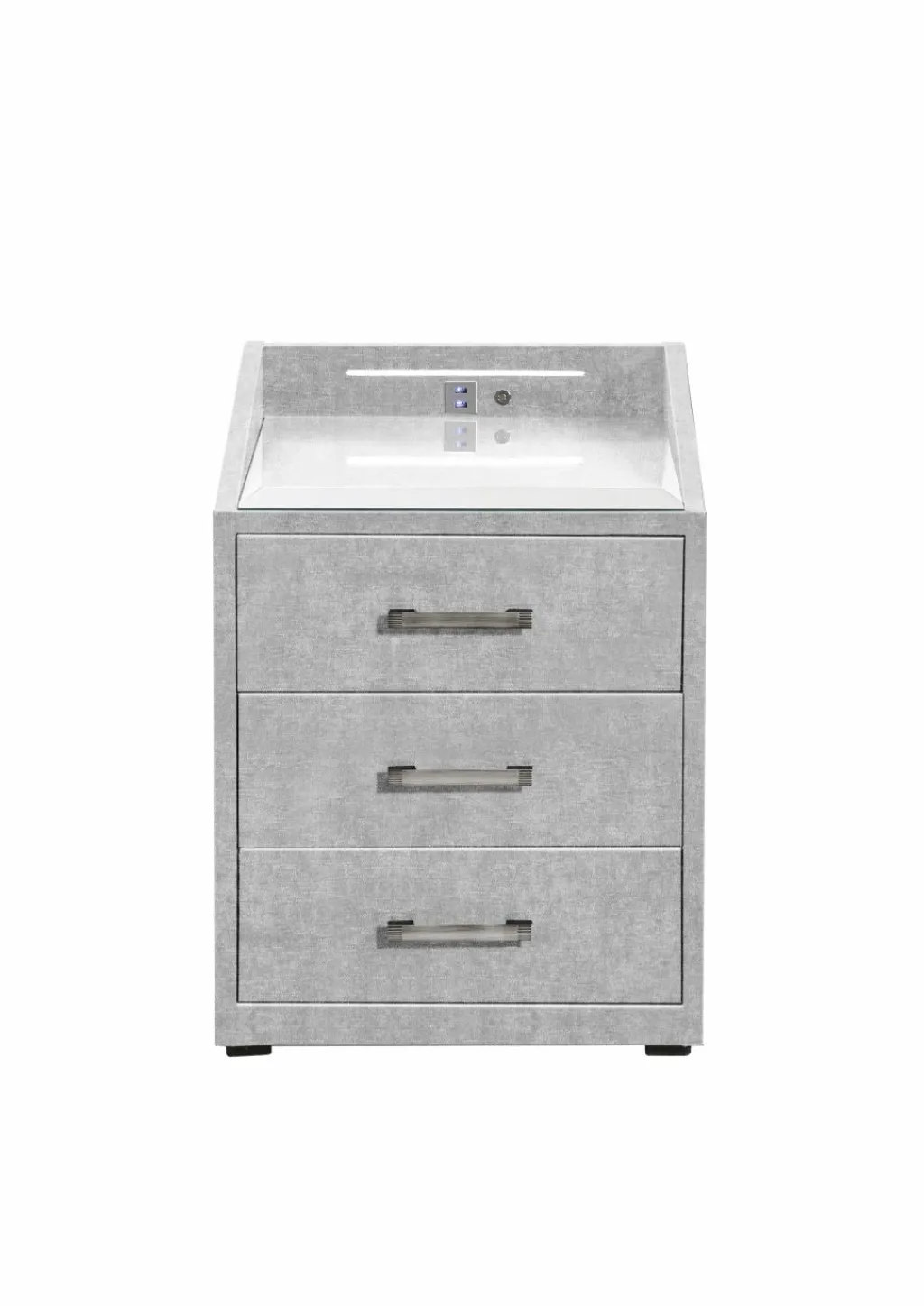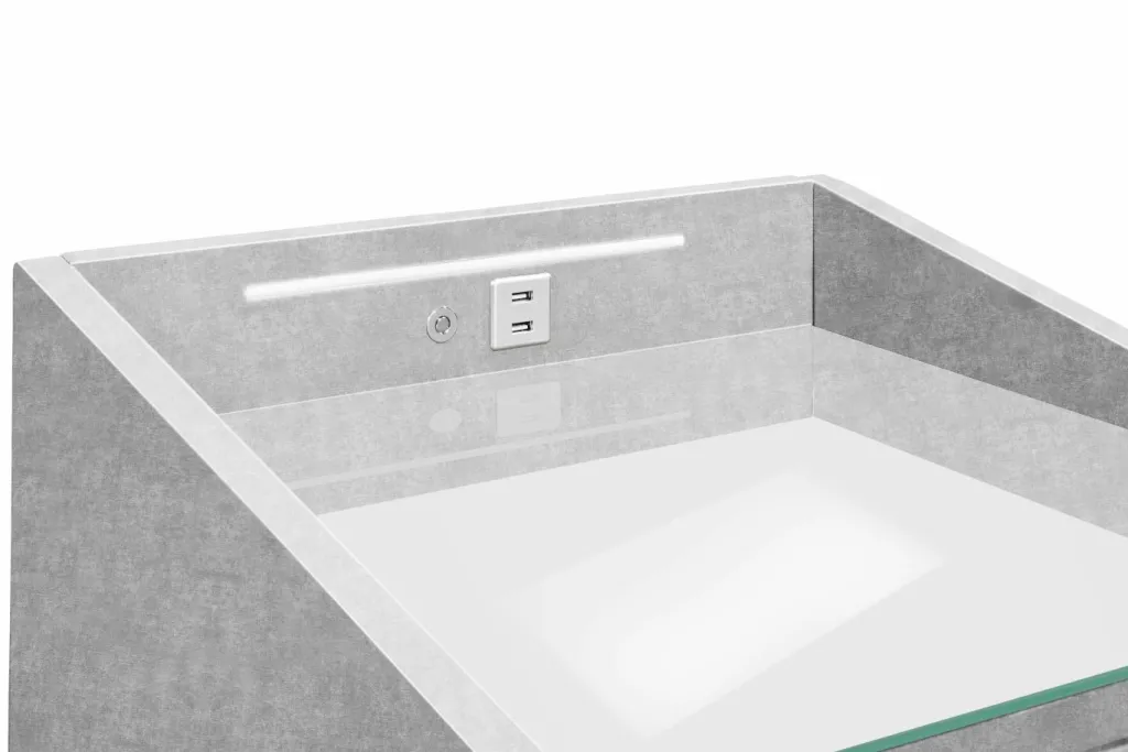 | Équipement Commodes Phono Bureau Étagère: | Plateau en verre, Tiroirs, avec port USB, incl. éclairage | ||