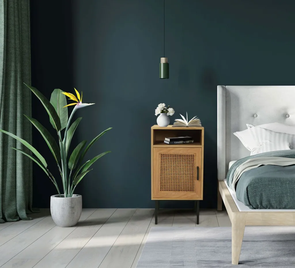 Façade : rotin, MDF (panneaux en fibres de bois de densité moyenne) ton naturel