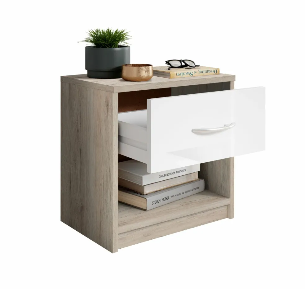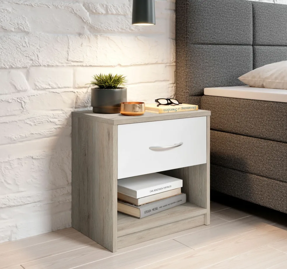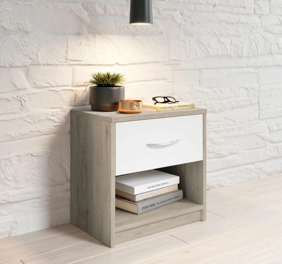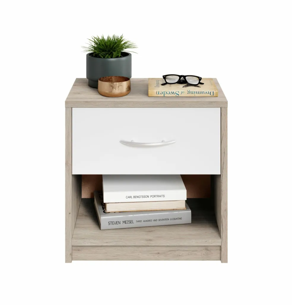 Façade : décor chêne San Remo avec un tiroir ton blanc
