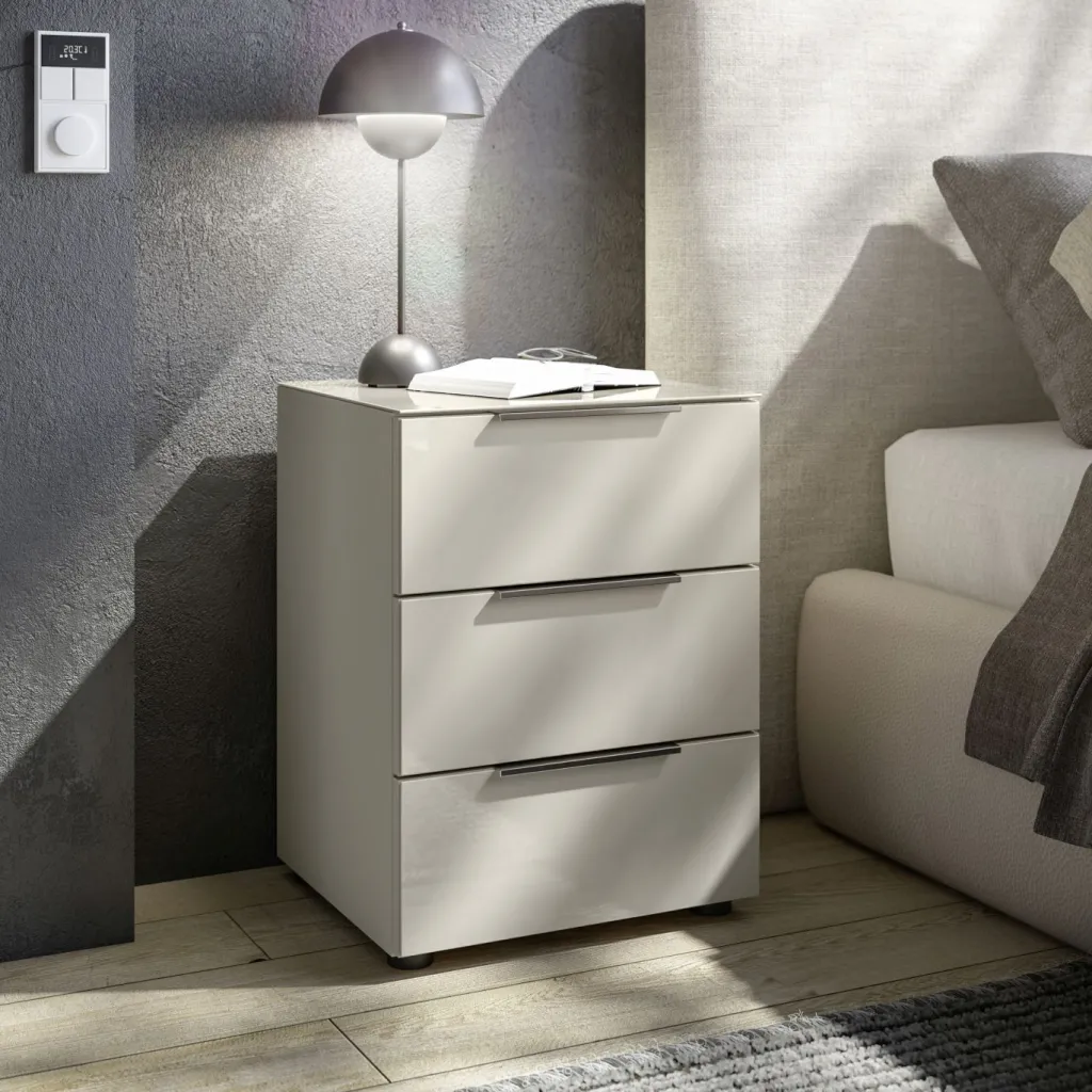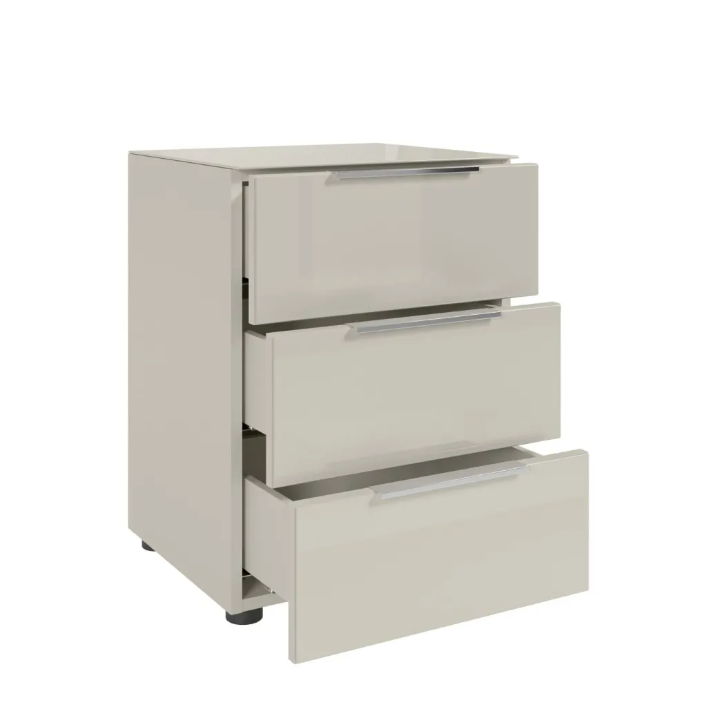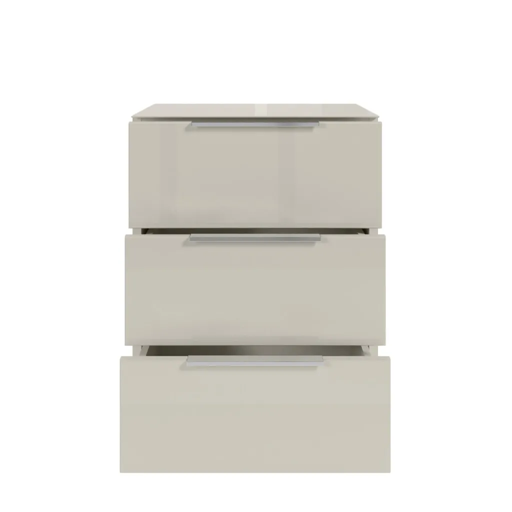Caisson : ton cachemire, panneaux de particules surfacés et mélaminés (PPSM), tablette en verre lisse