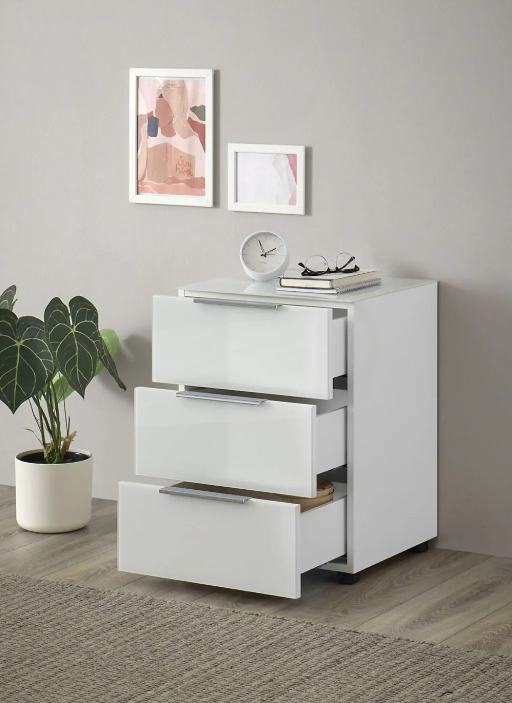 3 tiroirs avec fermeture amortie et coulisses sous tiroirs