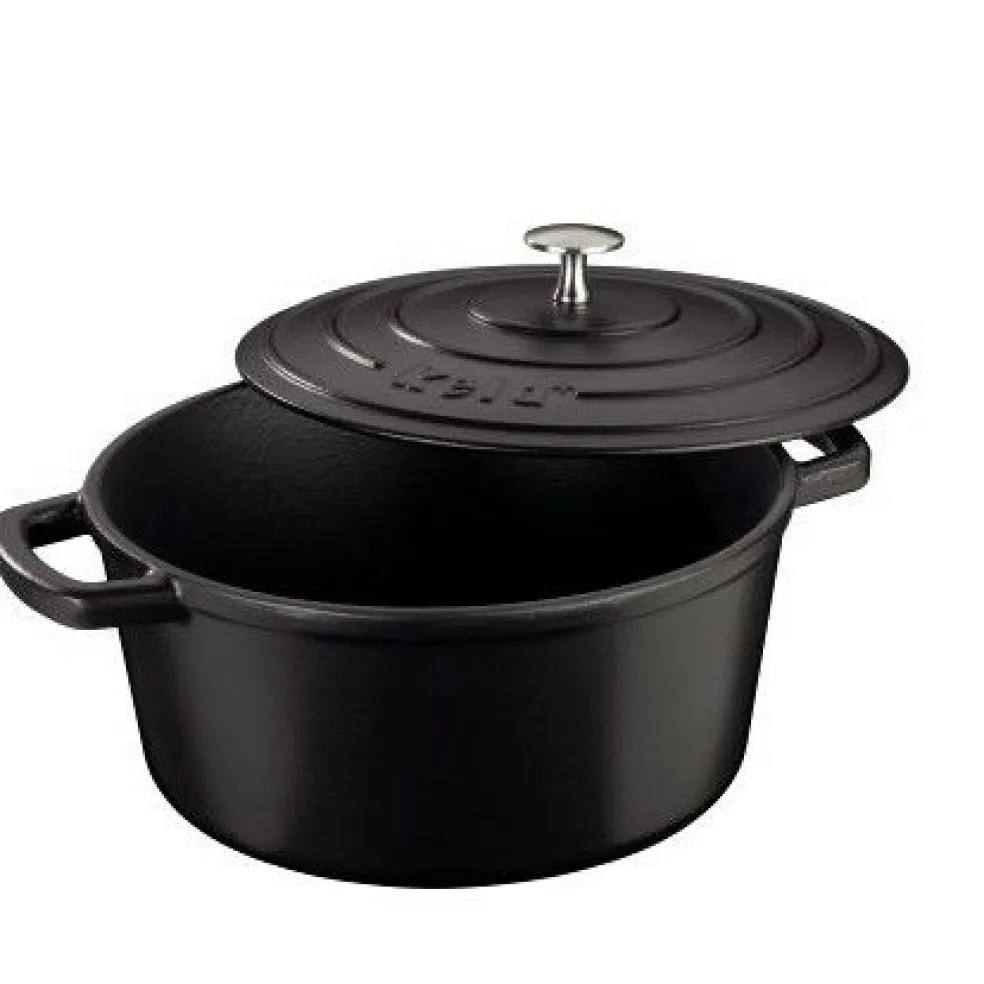 Cocotte ronde Calido ton noir : elle se caractérise par son revêtement en émail à l’intérieur et à l’extérieur.