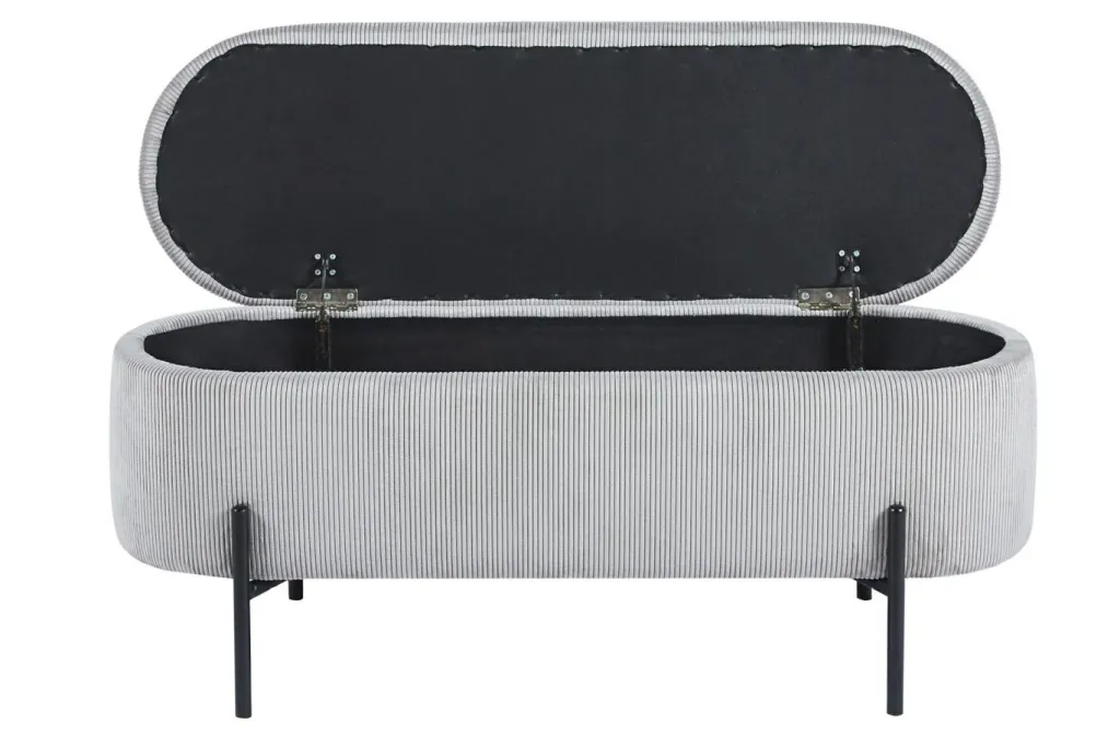 Revêtement : tissu velours côtelé ton gris clair 88% polyester et 12% nylon