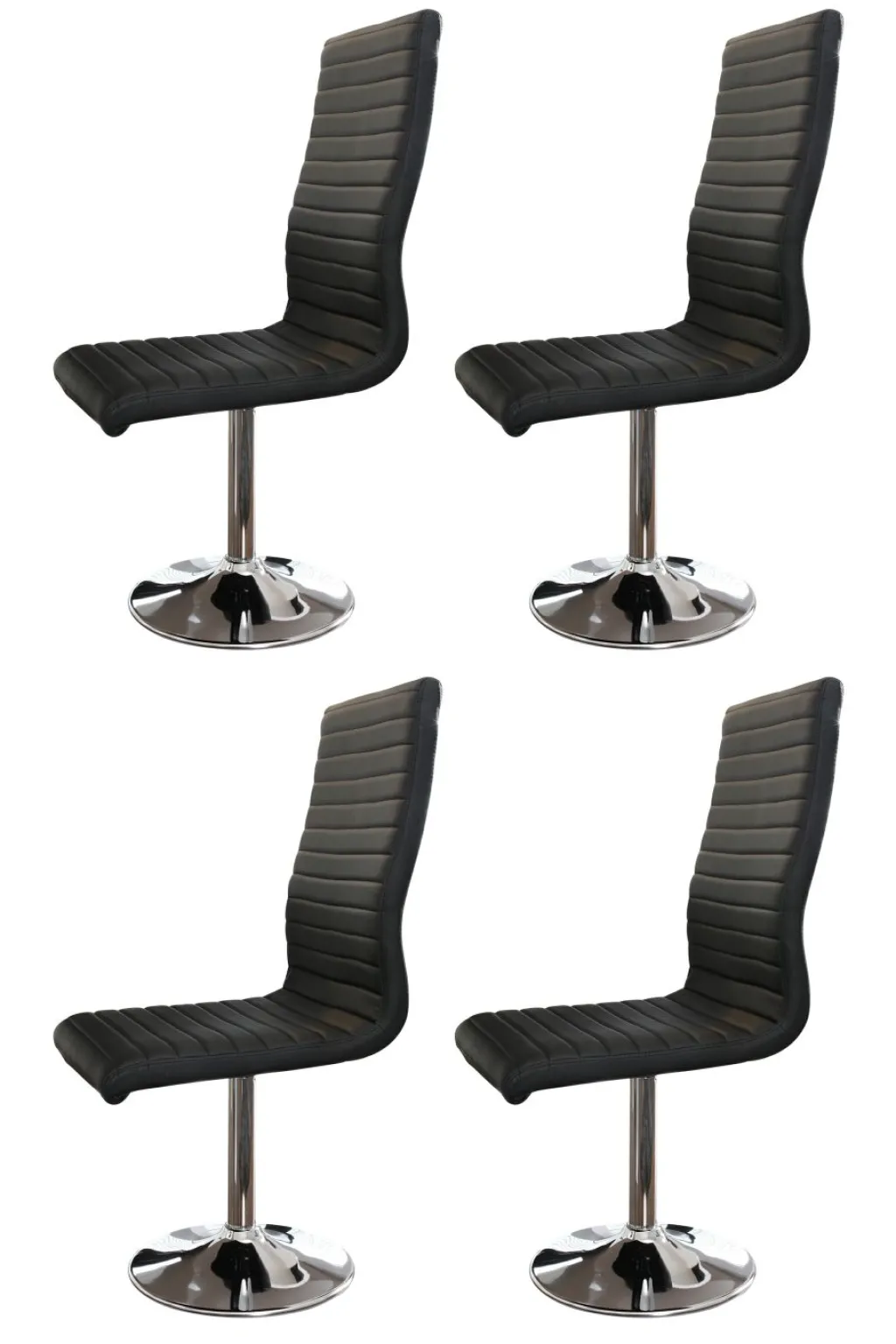 4 chaises avec assise et dossier surpiqués, modèle pivotant à 360°