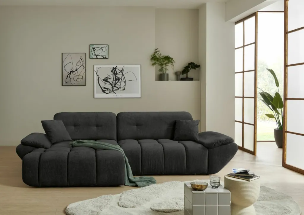 | Equipement canapés: | Méridienne à gauche, Prolongement de l’assise motorisé, incl. coussins | ||