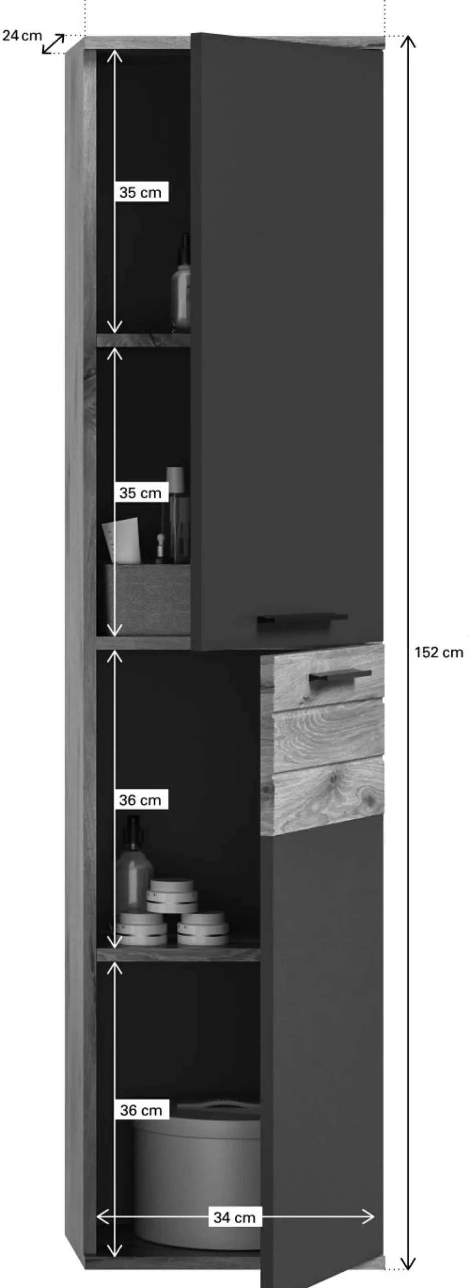 | Dimensions : | L/H/P env. 37/152/24 cm | ||