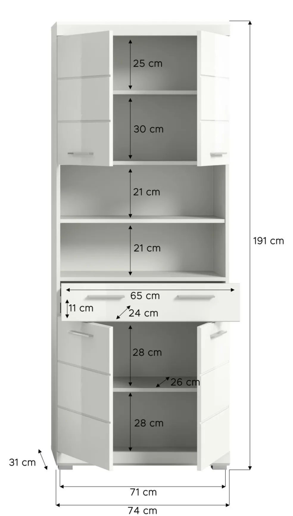 | Dimensions : | L/H/P env. 74/191/31 cm | ||