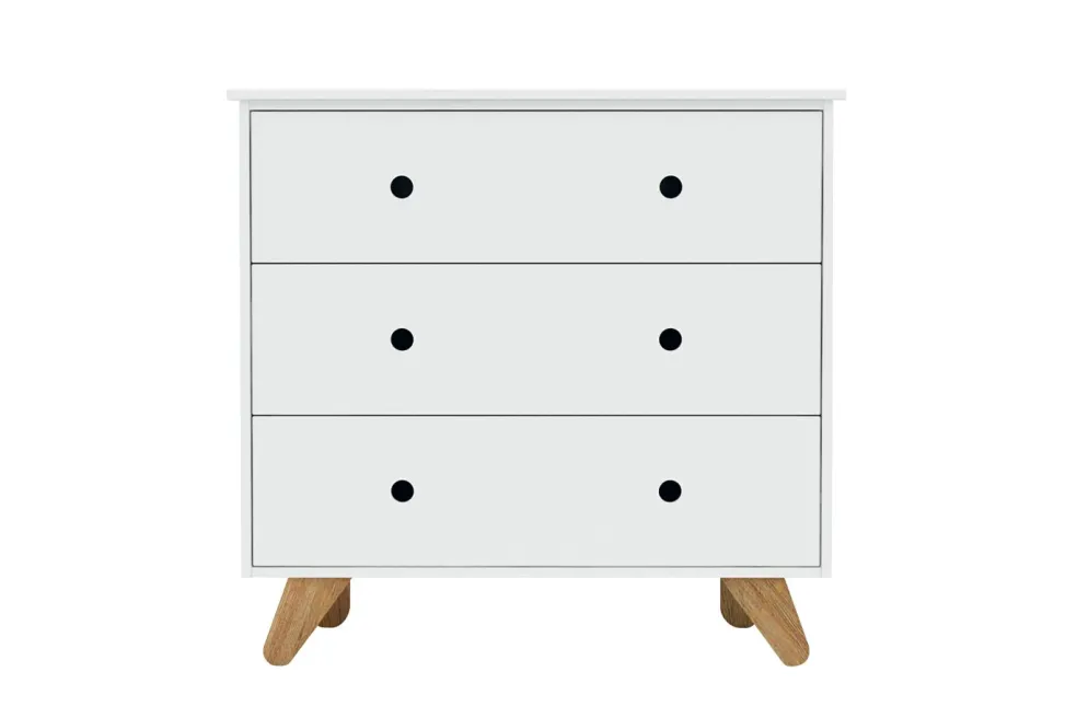 Commode : MDF (panneau de fibres de bois de densité moyenne) ton blanc laqué en vernis acrylique