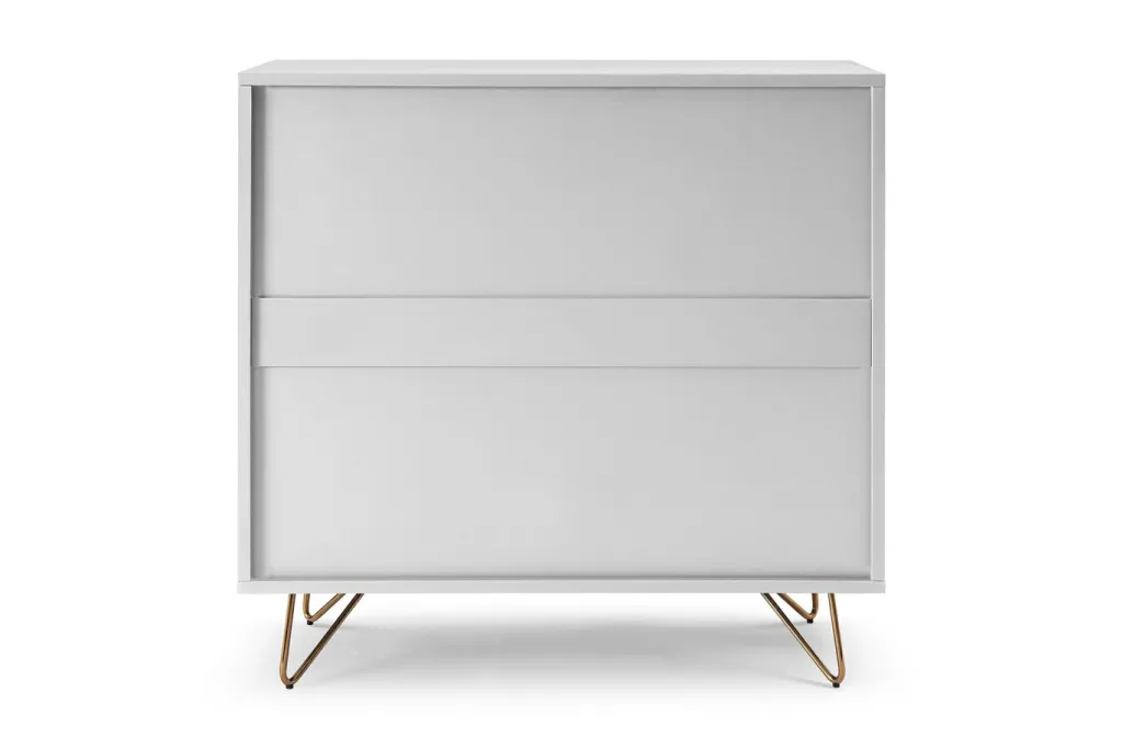 Caisson et façade : MDF (panneau de fibres de bois de densité moyenne) laqué ton blanc mat
