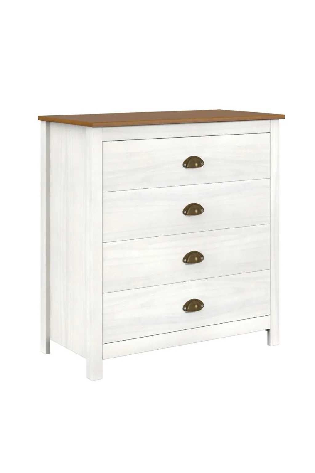 Pin massif (République tchèque) laqué ton blanc avec panneau supérieur ton marron