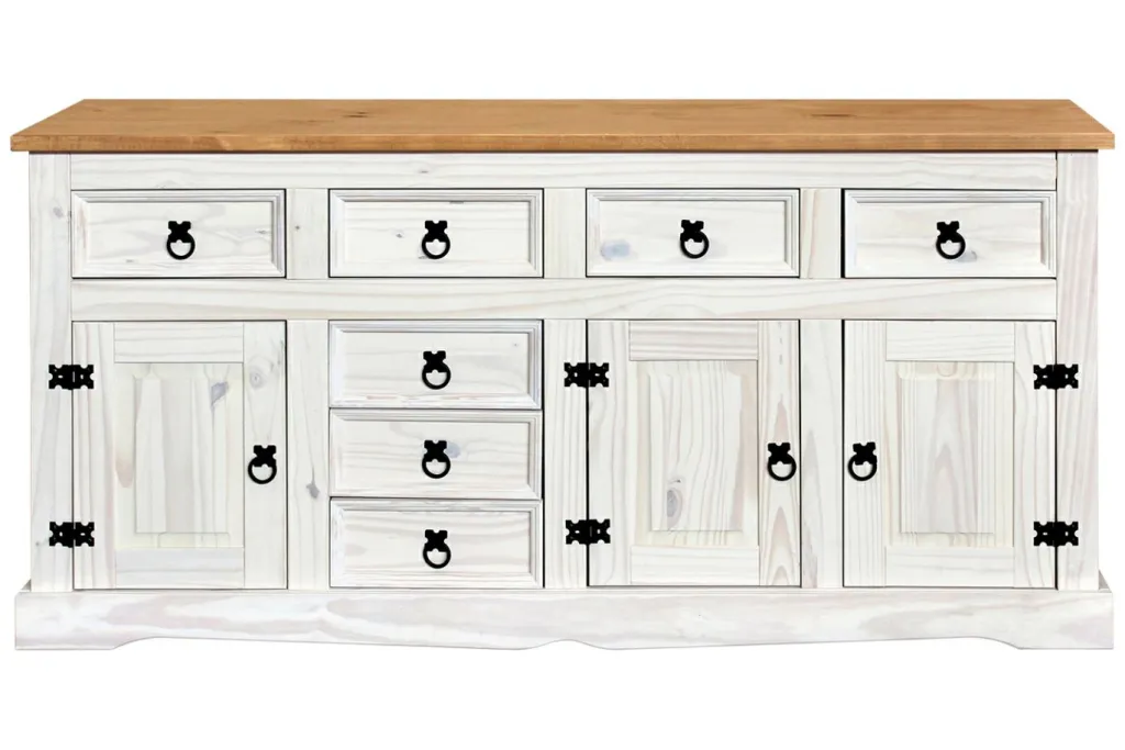 Pin massif (République tchèque) laqué ton blanc avec plateau supérieur ton miel