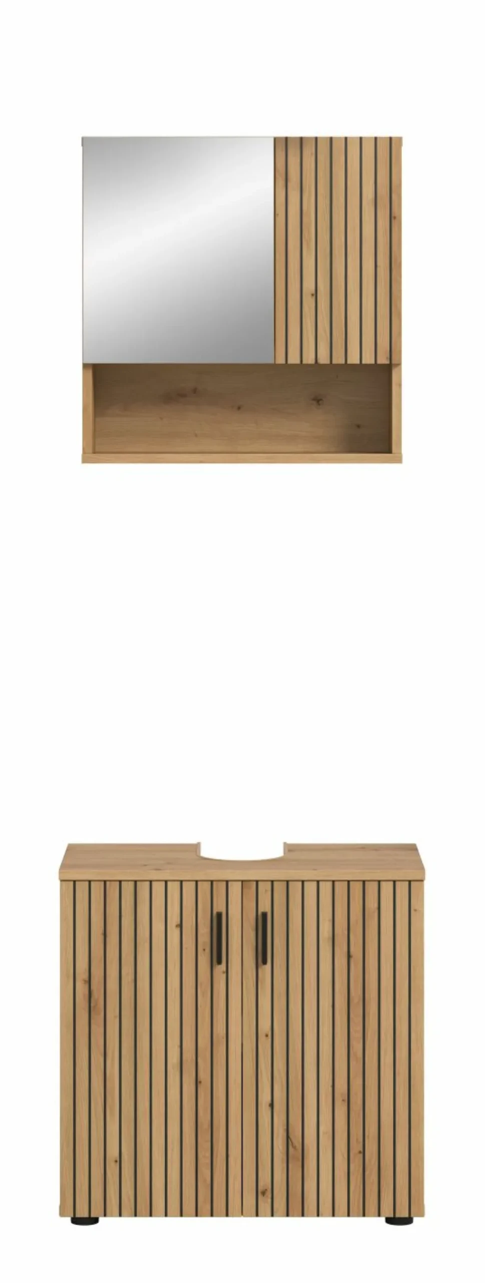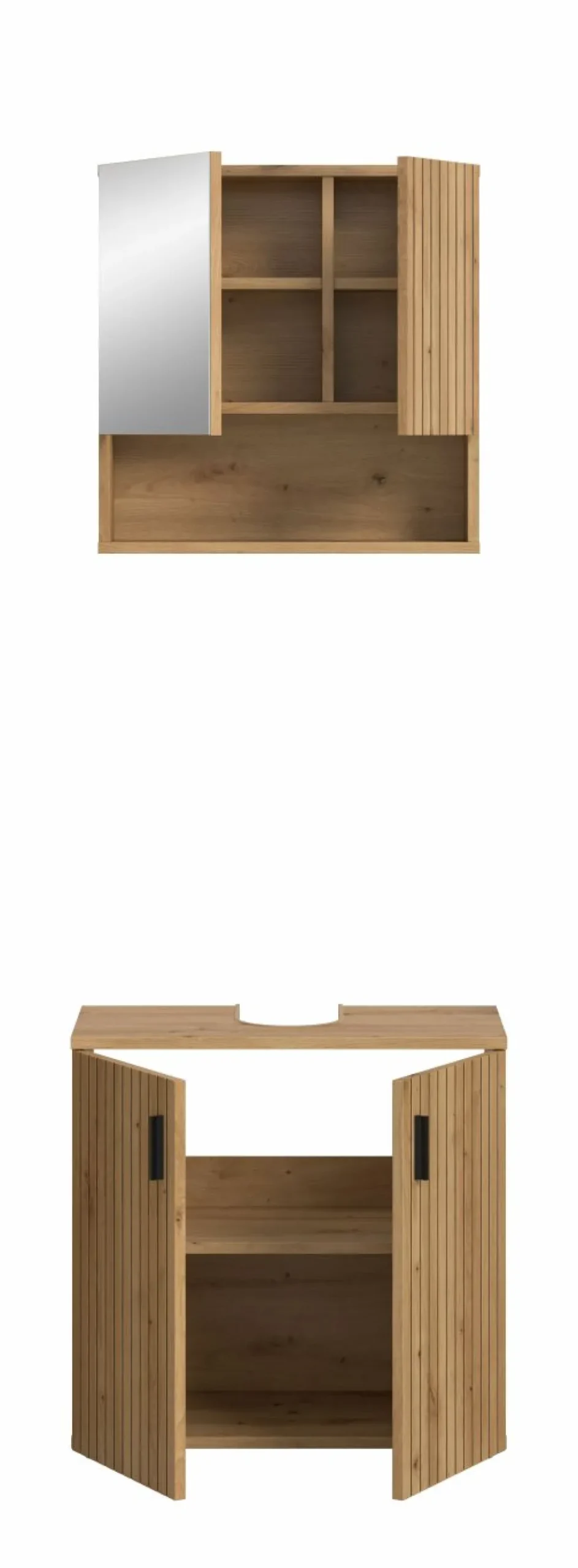1 armoire de toilette avec 2 portes (dont 1 porte miroir), 2 tablettes amovibles et 1 casier ouvert