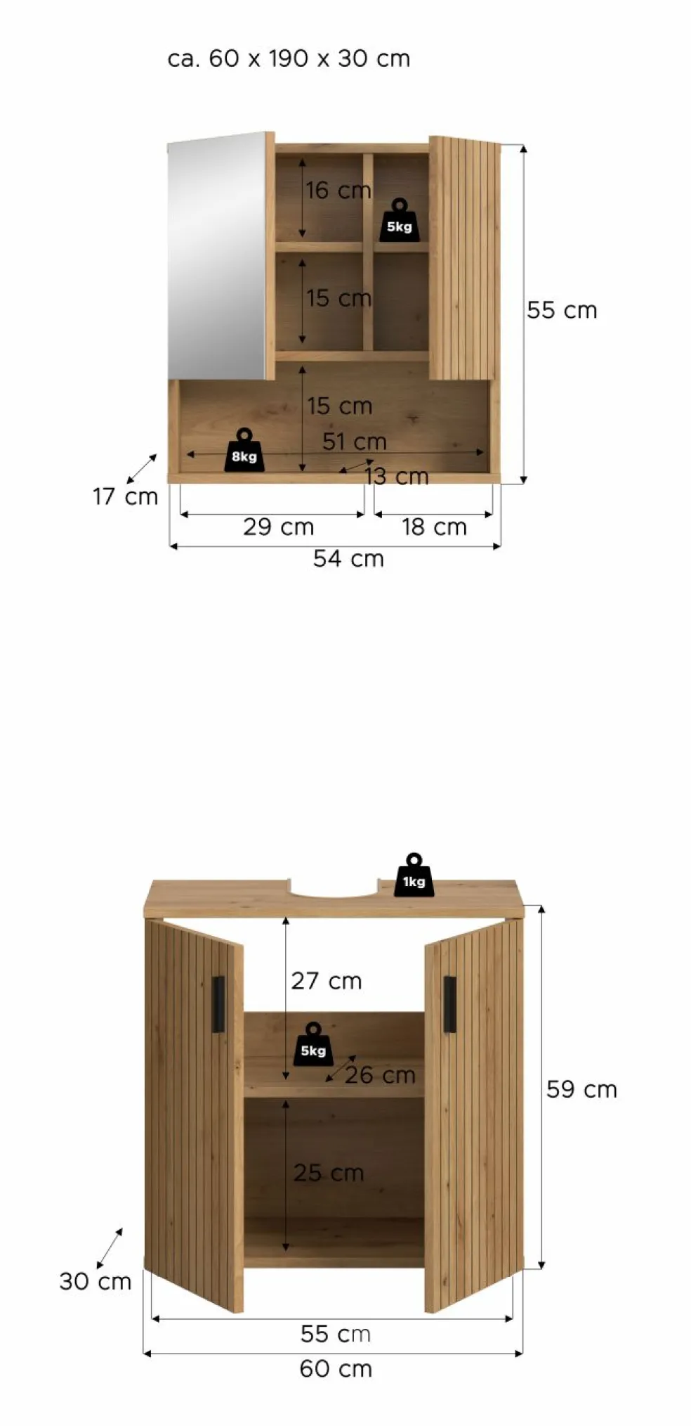 | Meuble sous lavabo | 60 | 59 | 30 |