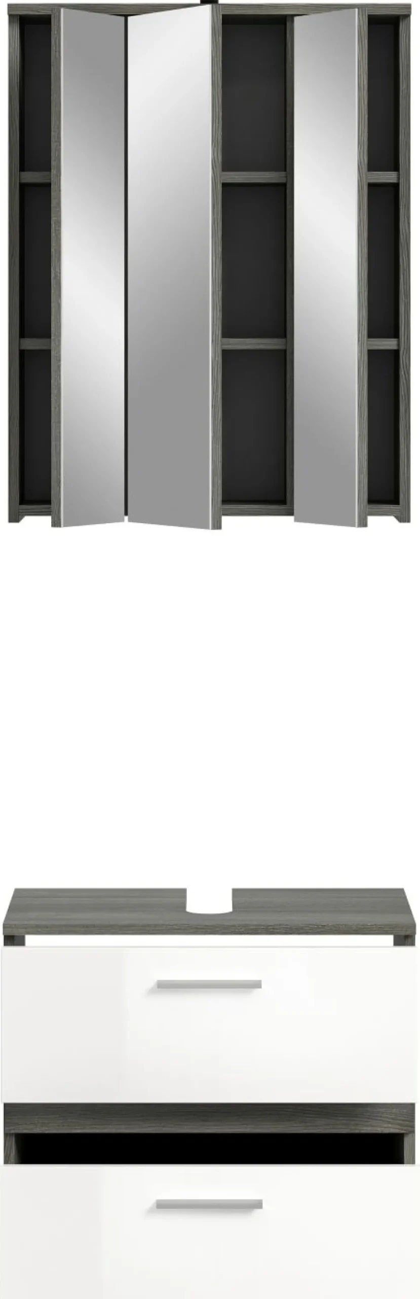 1 armoire de toilette avec 3 portes miroir et 6 tablettes amovibles, incl. lampe de salle de bains