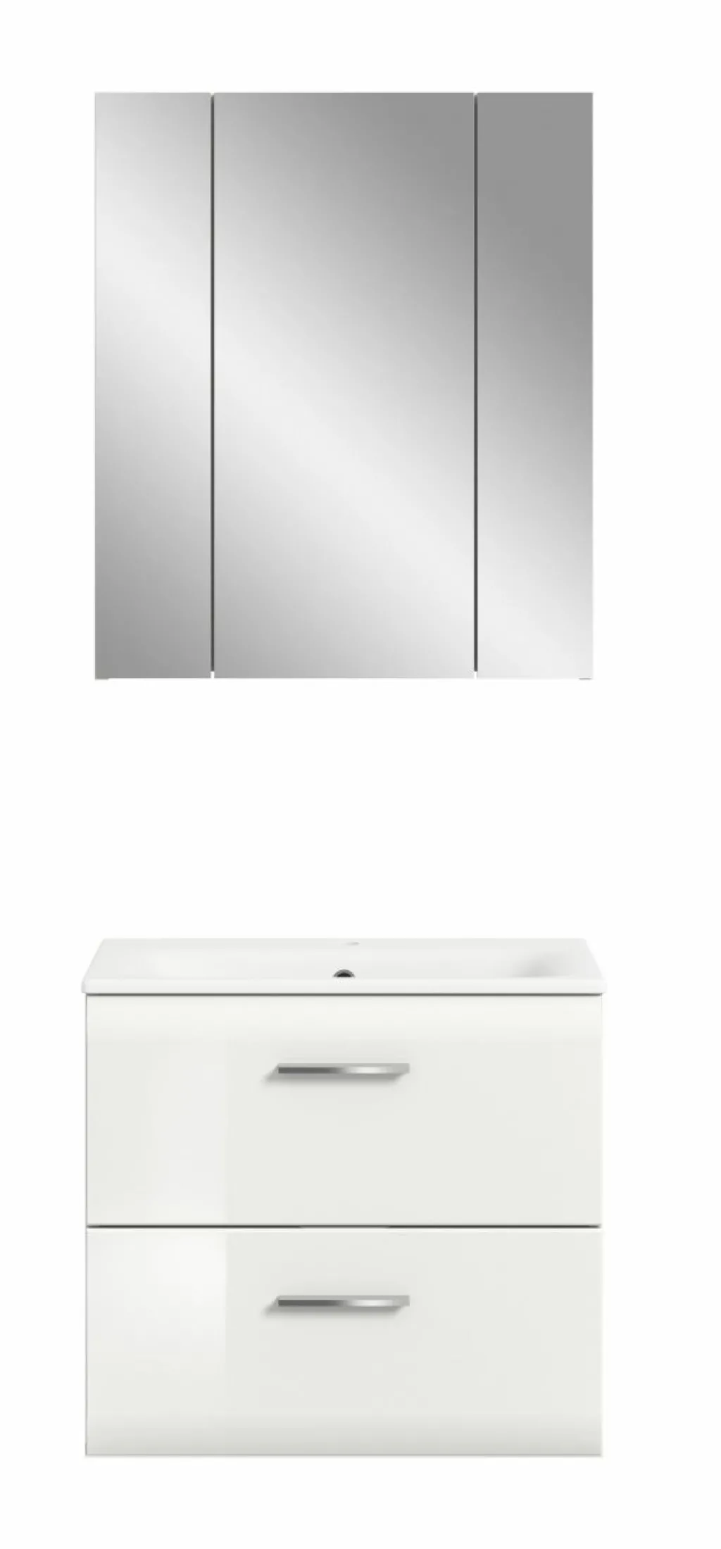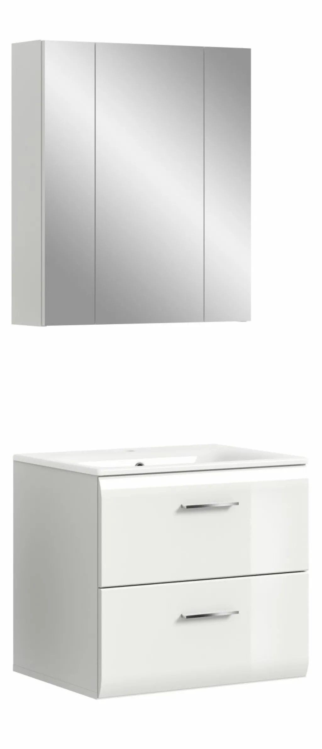 Façade : MDF (panneaux de fibres de bois de densité moyenne) thermoformé ton blanc ultra brillant / miroir