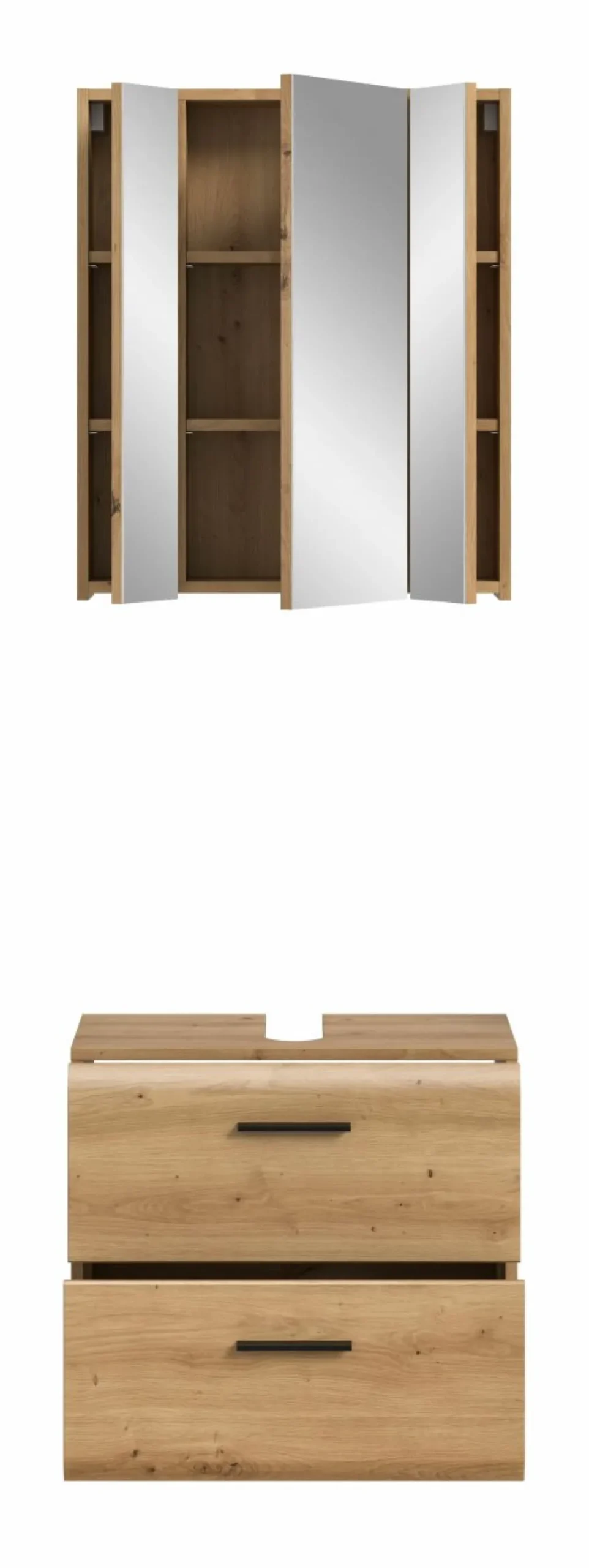 Façade : MDF (panneaux de fibres de bois de densité moyenne) décor chêne Artisan thermoformé / miroir
