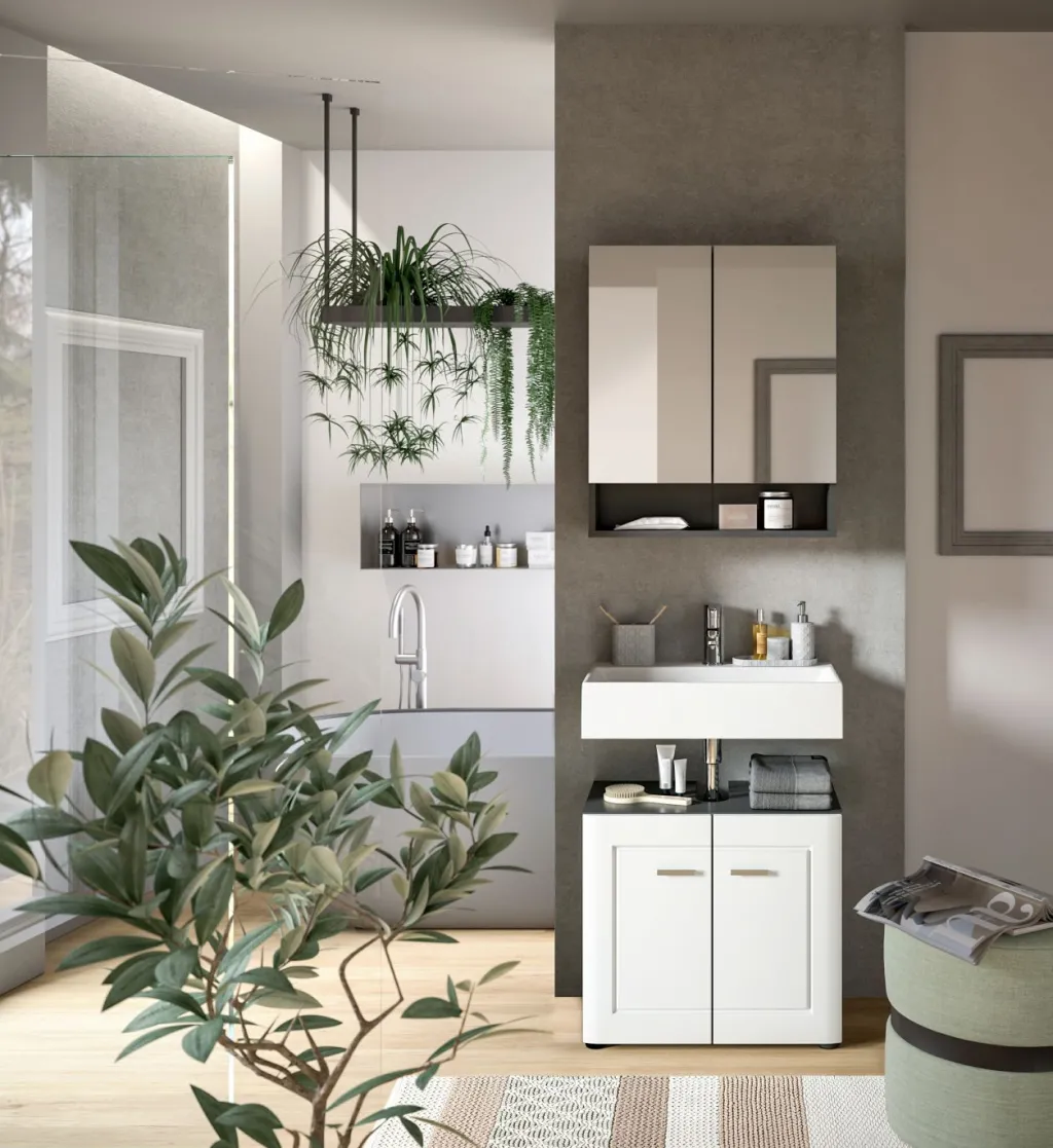 1 meuble sous lavabo avec 2 portes et 1 tablette amovible